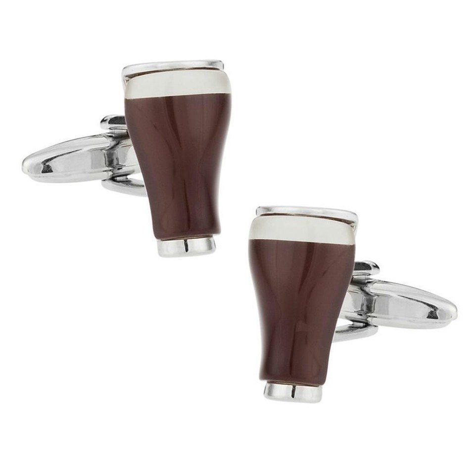 PINT OF STOUT CUFFLINKS Dark Beer Ale Pub Glass Bartender Wedding NEW w Gift Bag