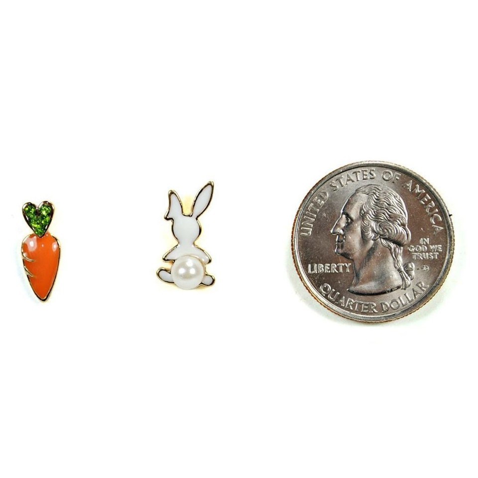 RABBIT & CARROT EARRINGS Post Pair Enamel Easter Bunny NEW Faux Pearl Rhinestone