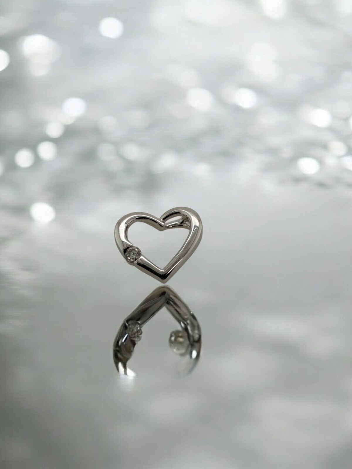 14K White Gold Round Natural Diamond Open Heart Women's Pendant 0.08ctw
