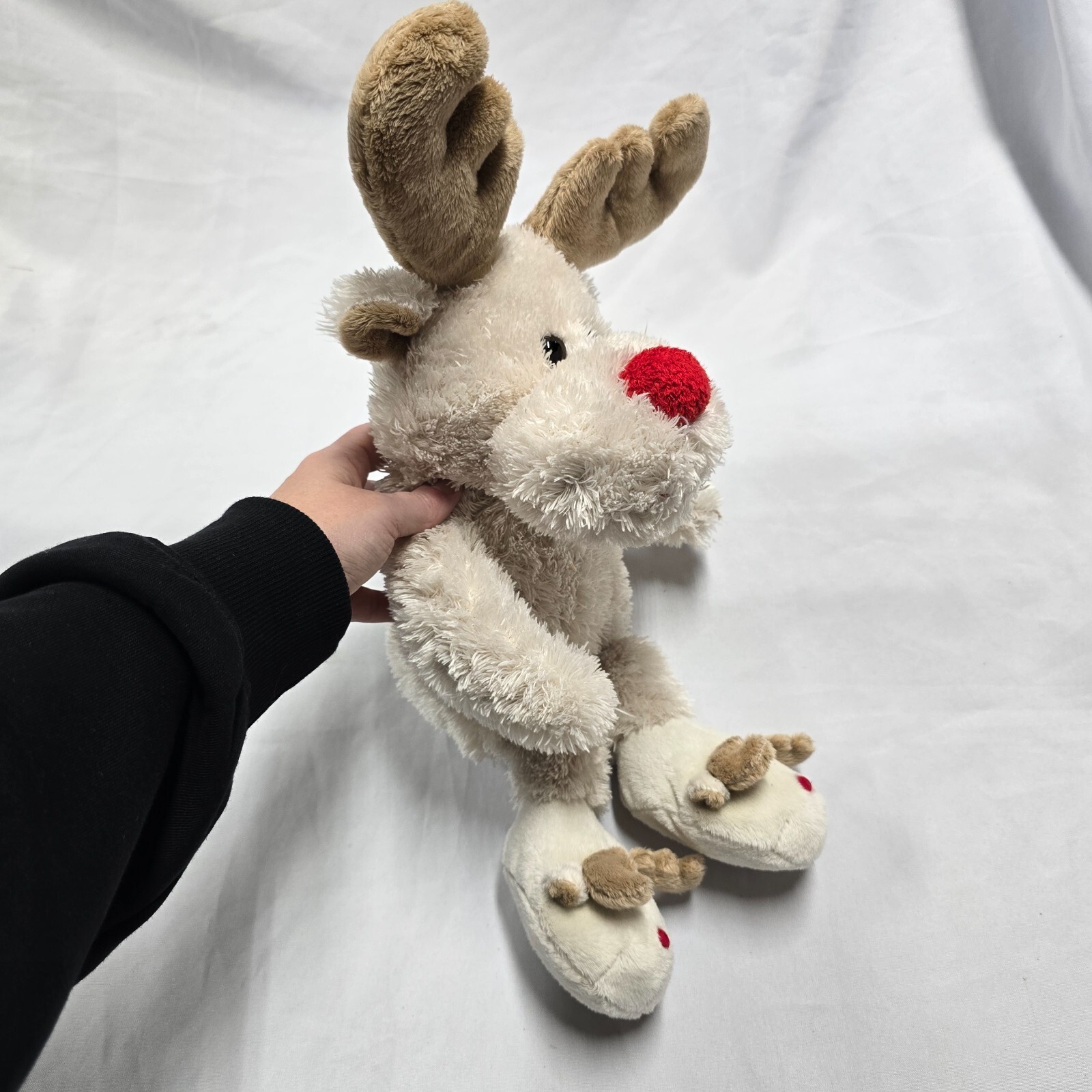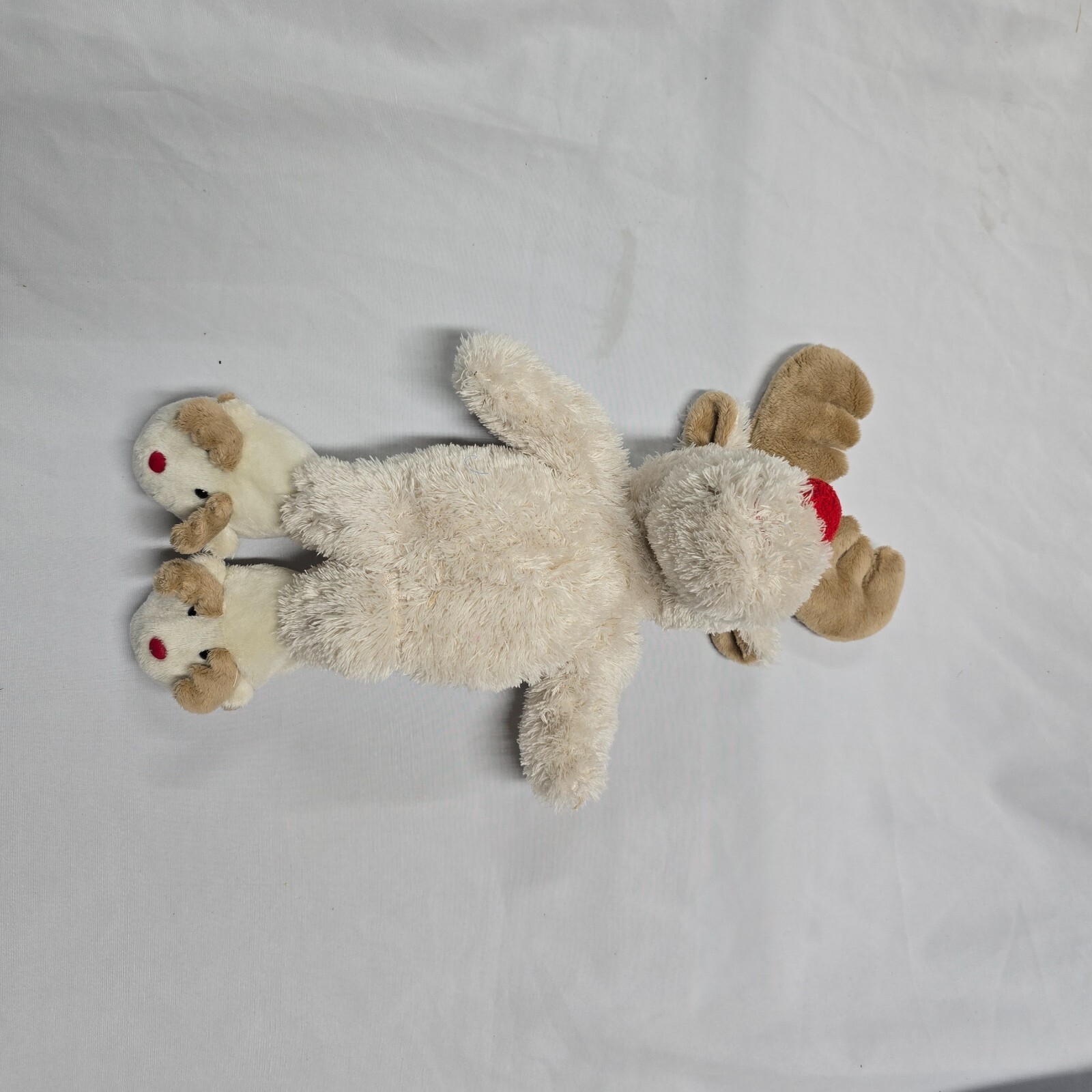 Vintage 2007 Stuffed Plush Animal Adventure Cream White Red Nose Reindeer Toy