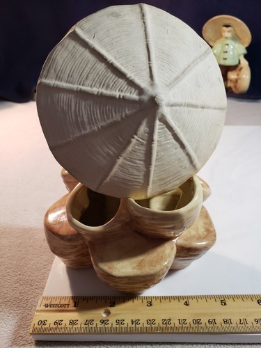 Stewart B McCulloch California Pottery Asian Statue 1950's Hat Basket Peddlers