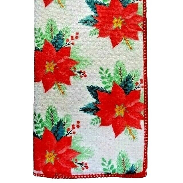 Poinsettia Dish Drying Mats Red Green on White 2pc Reversible Christmas Kitchen