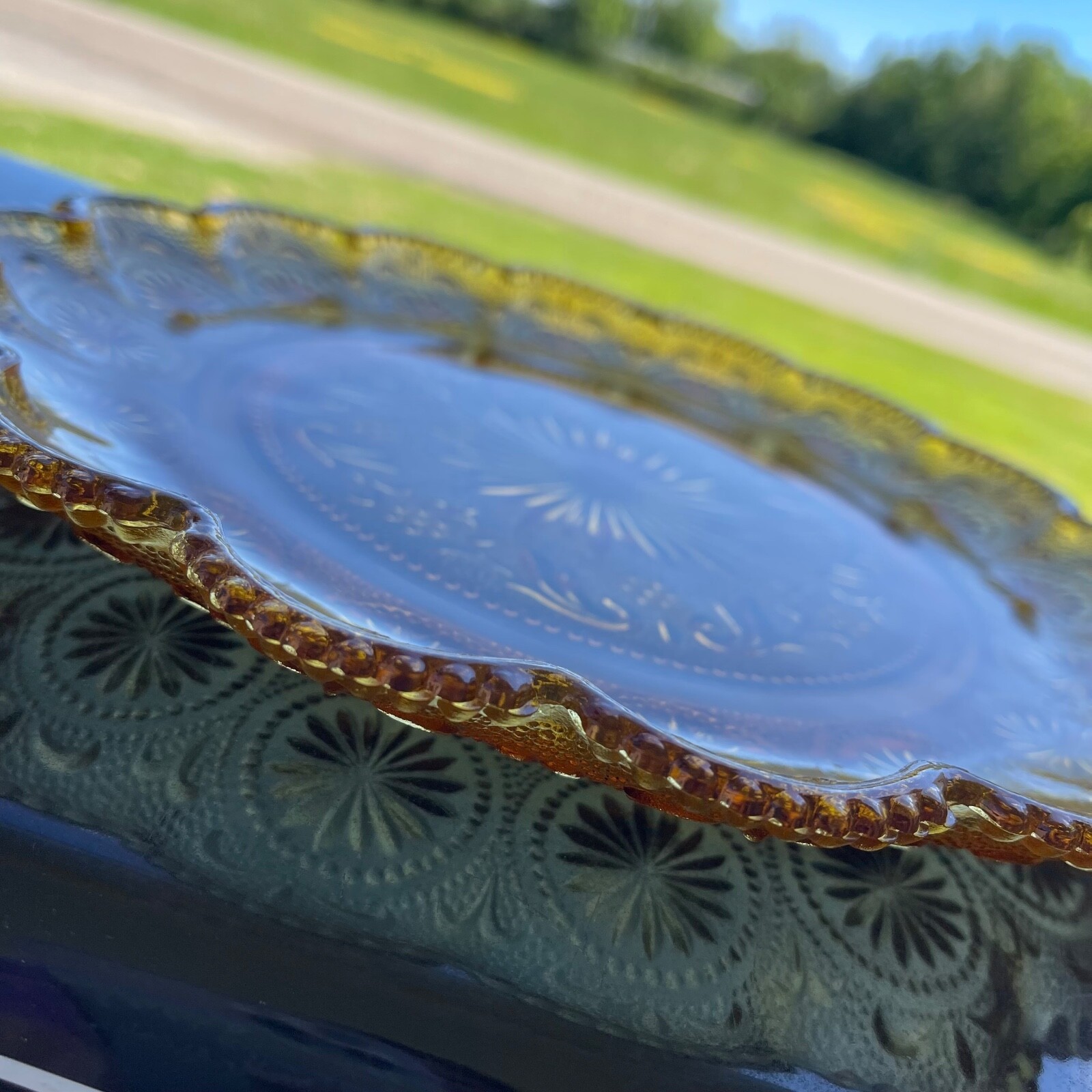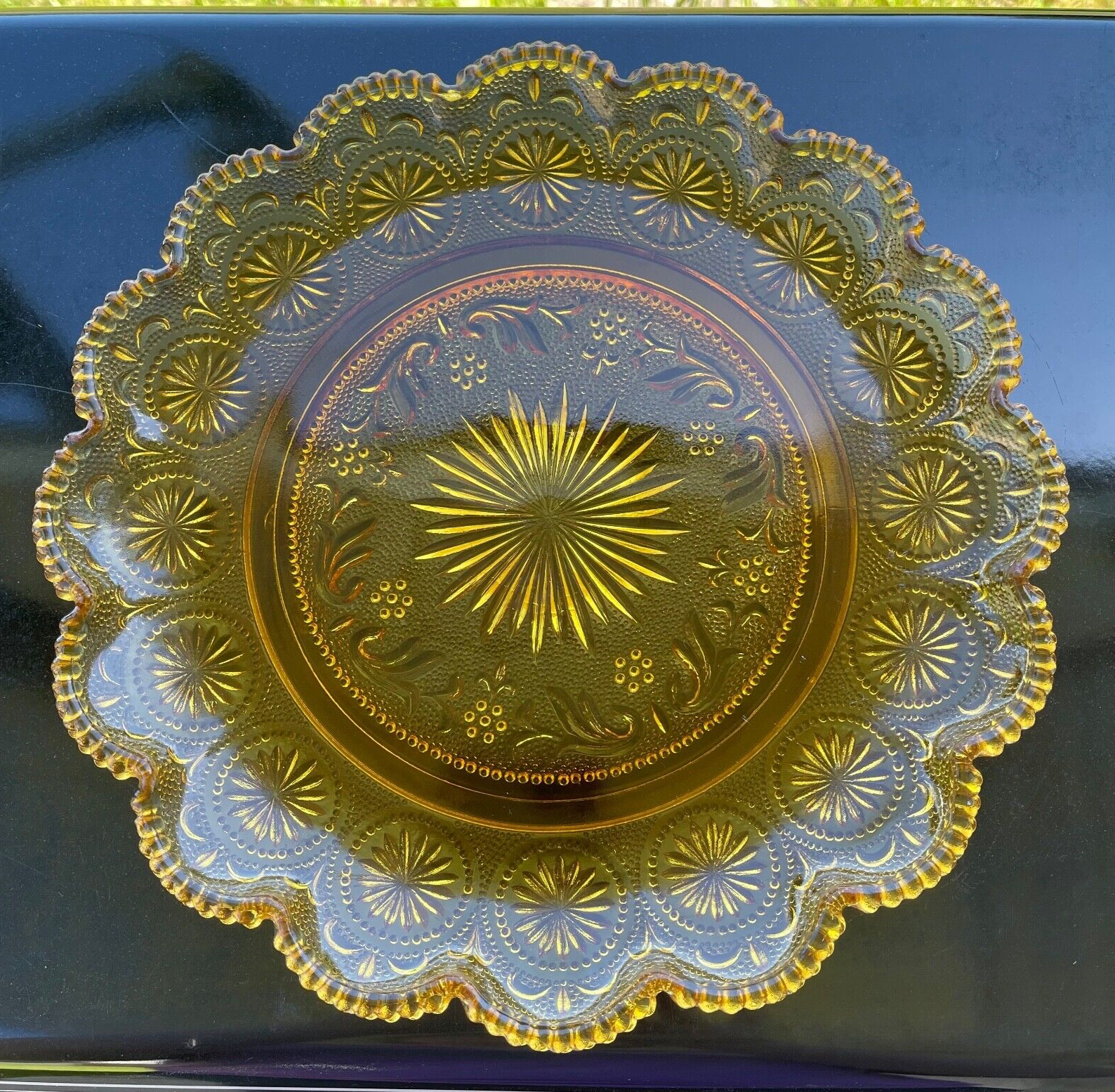 Vintage Brockway Glass American Concord Amber 10" Dinner Plate Supper Scalloped