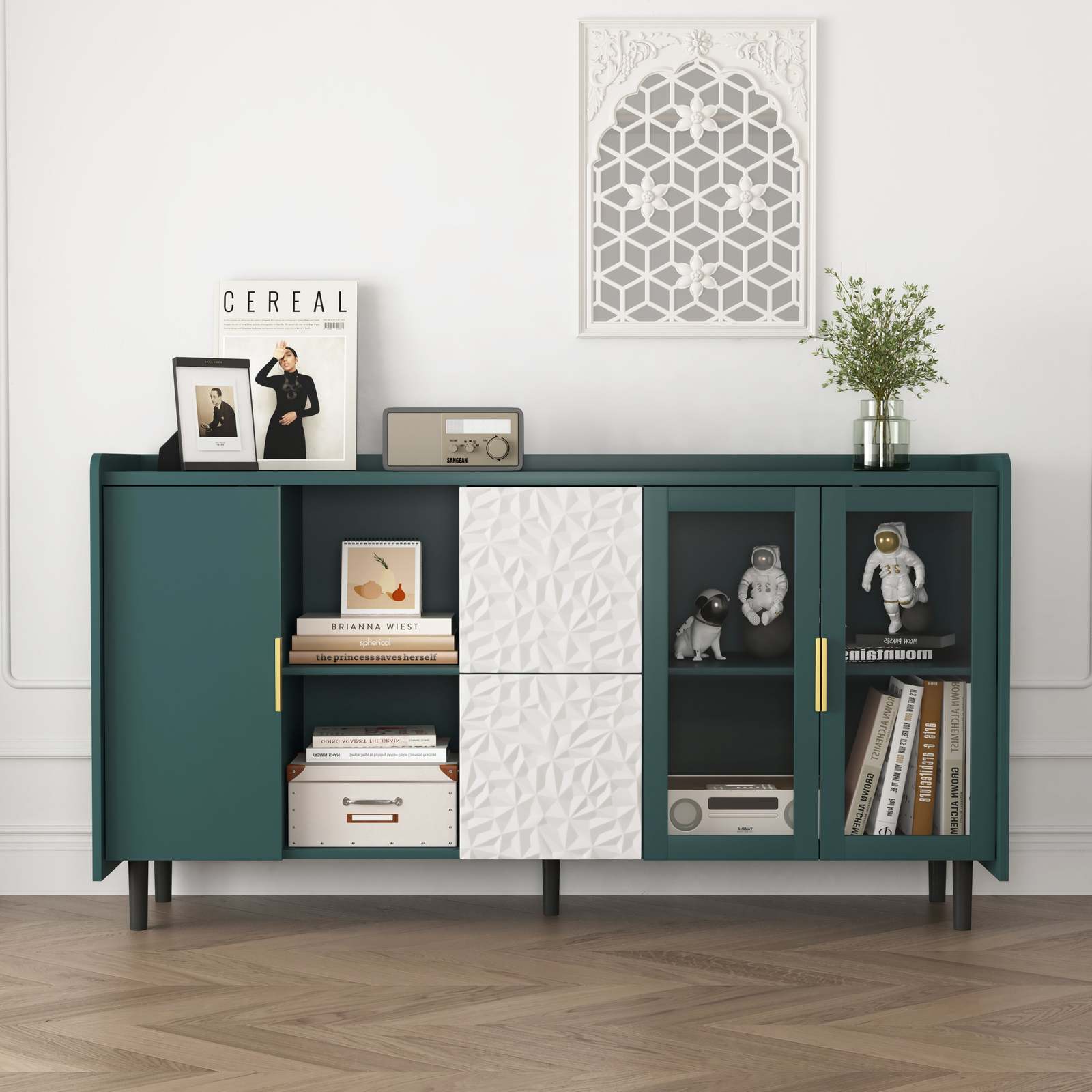 Green Kitchen Pantry Cabinet: 55" Coffee Bar