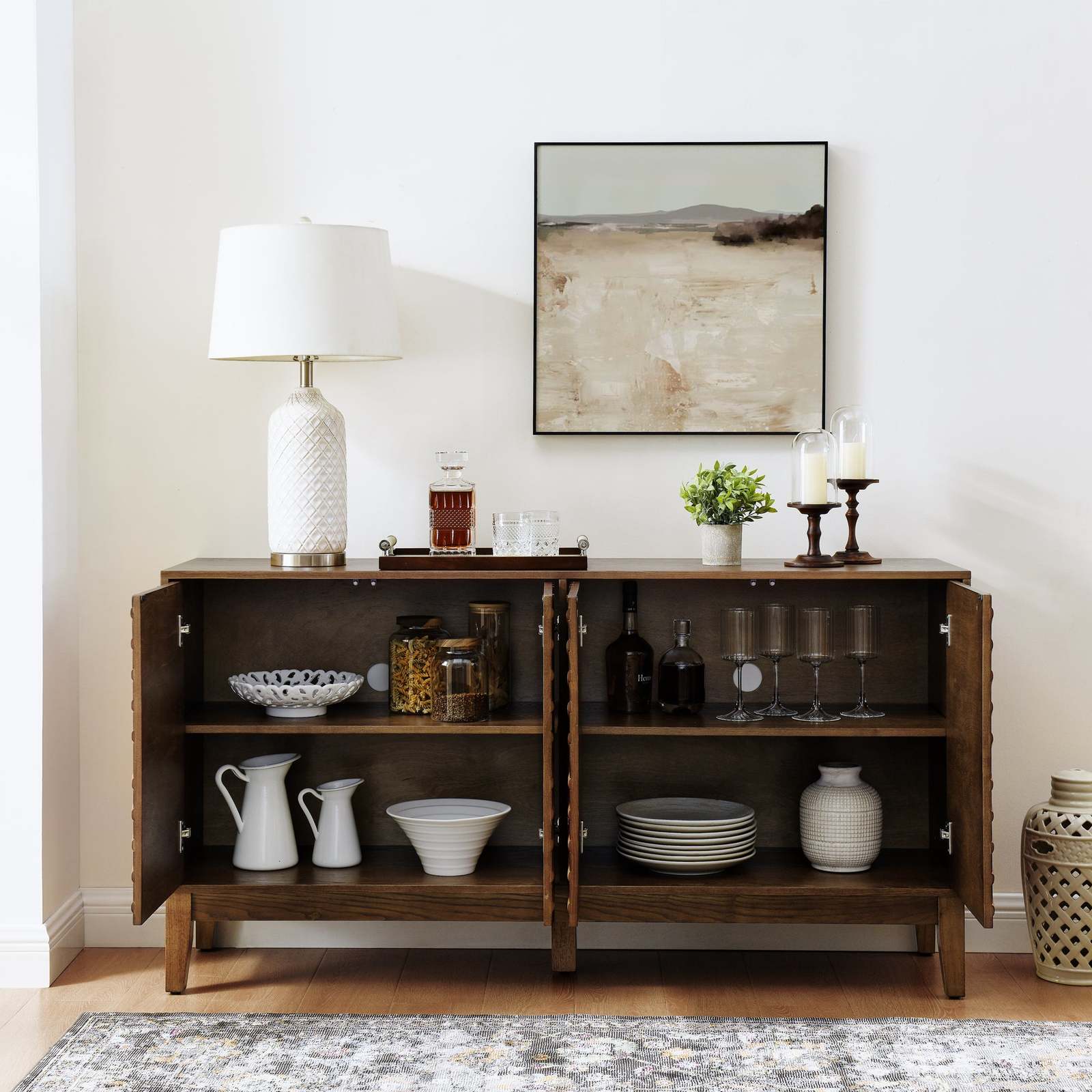Farmhouse Buffet Cabinet: 60.5" Walnut Storage