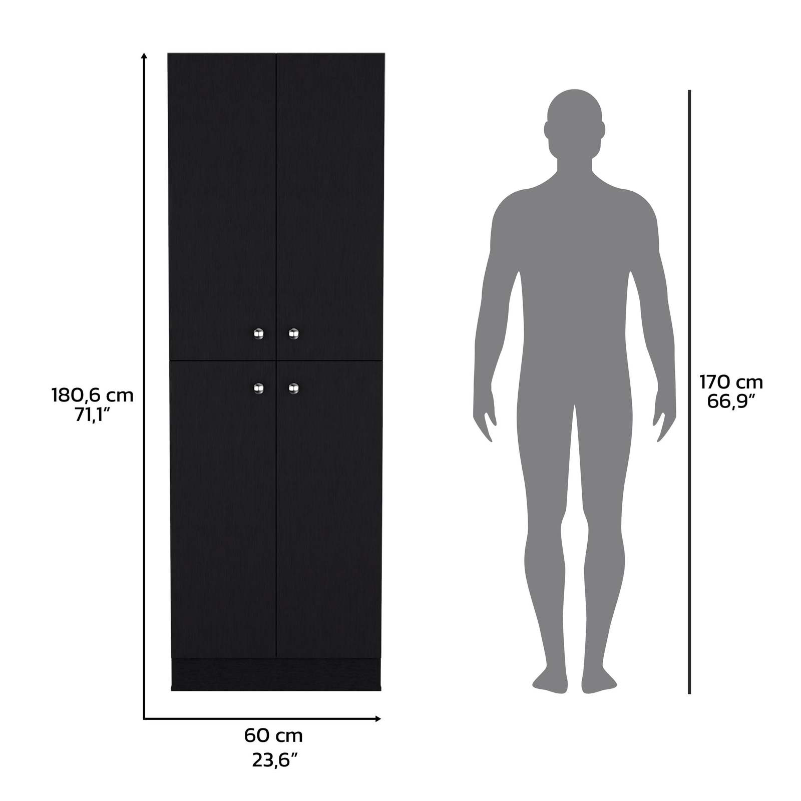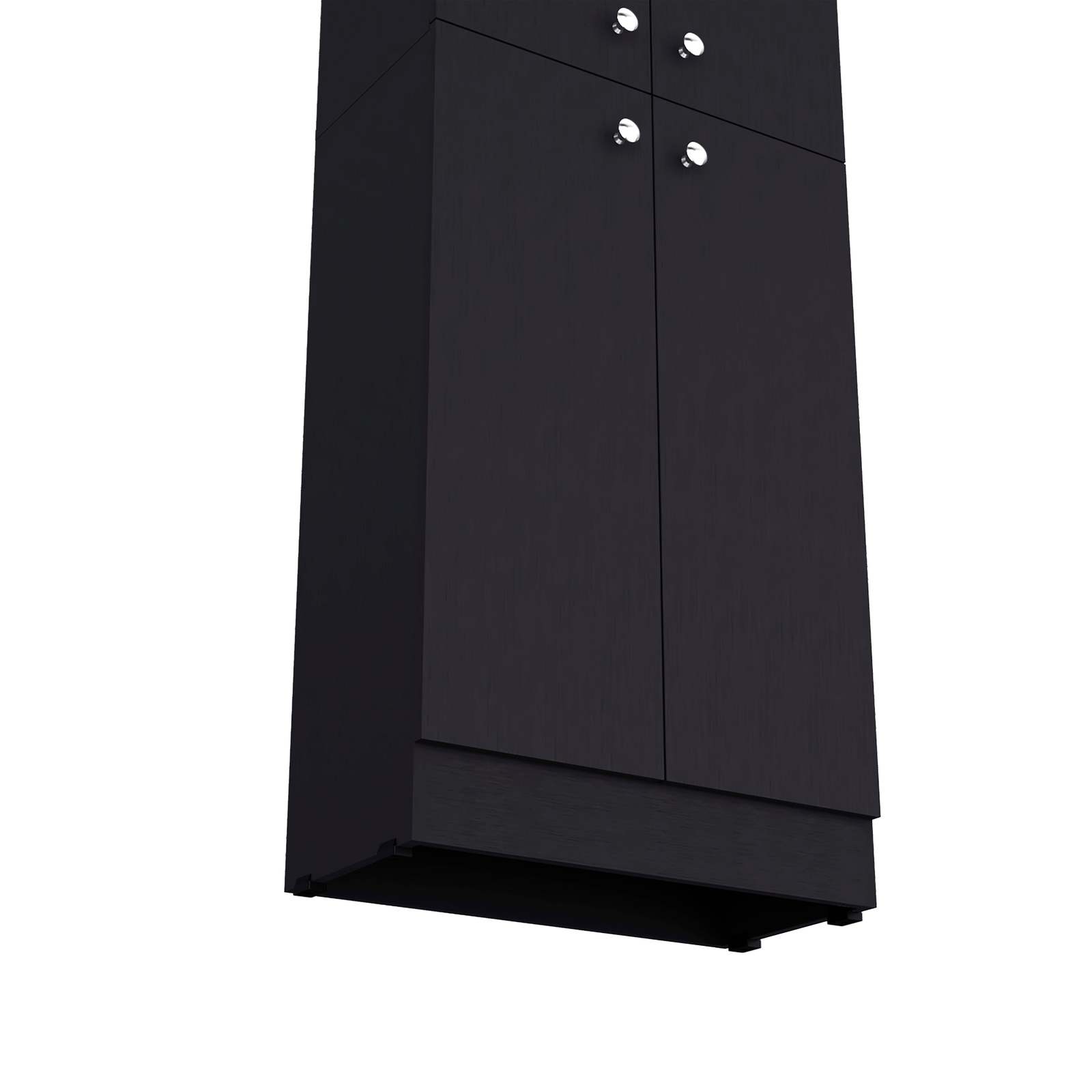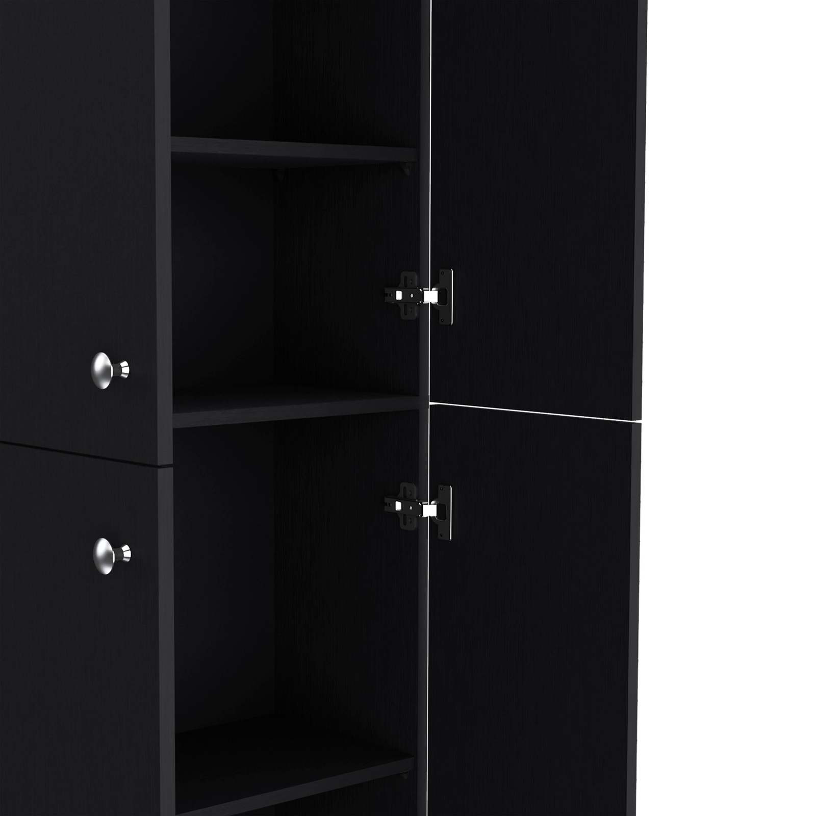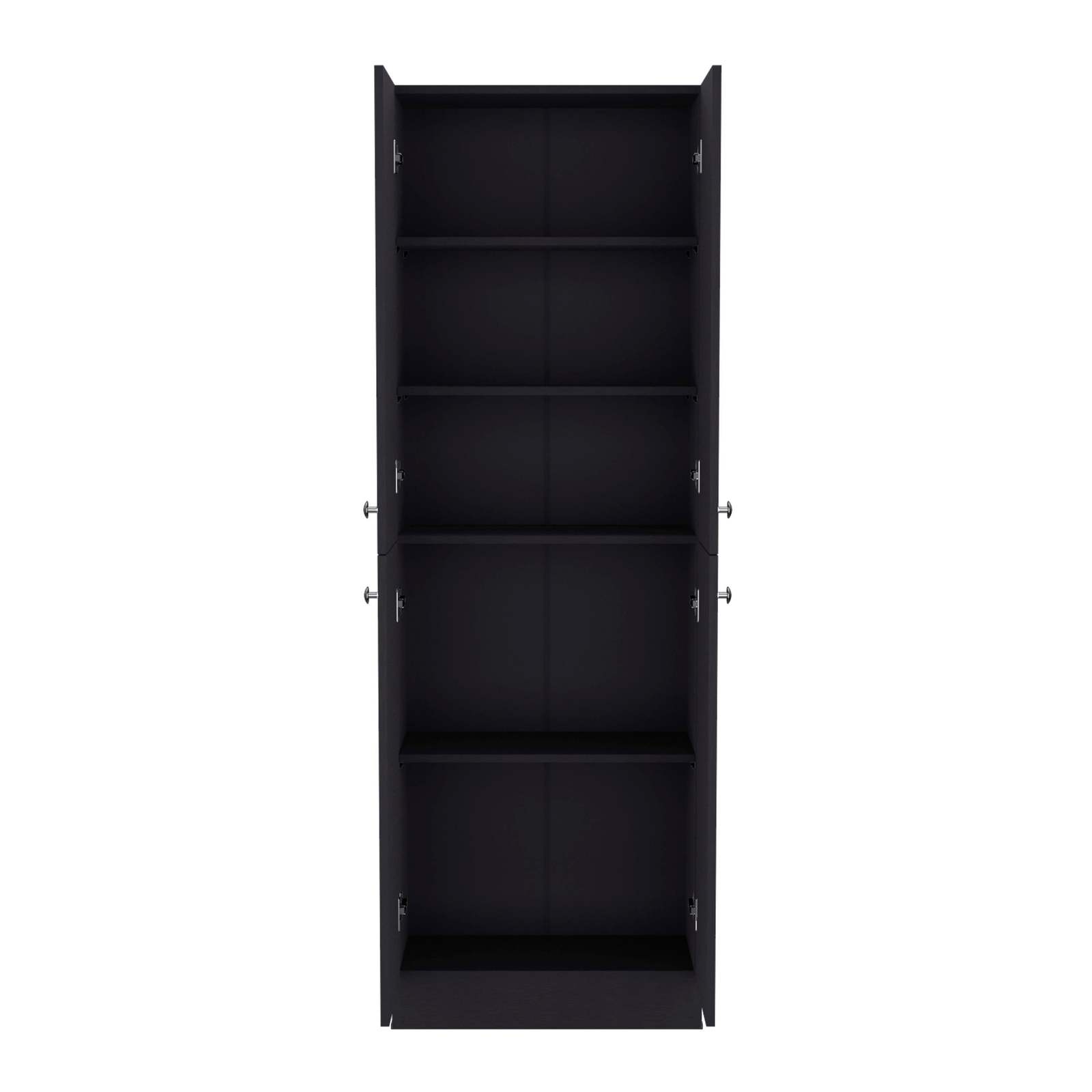Black Kitchen Pantry: 71"H, 4 Doors, 5 Shelves