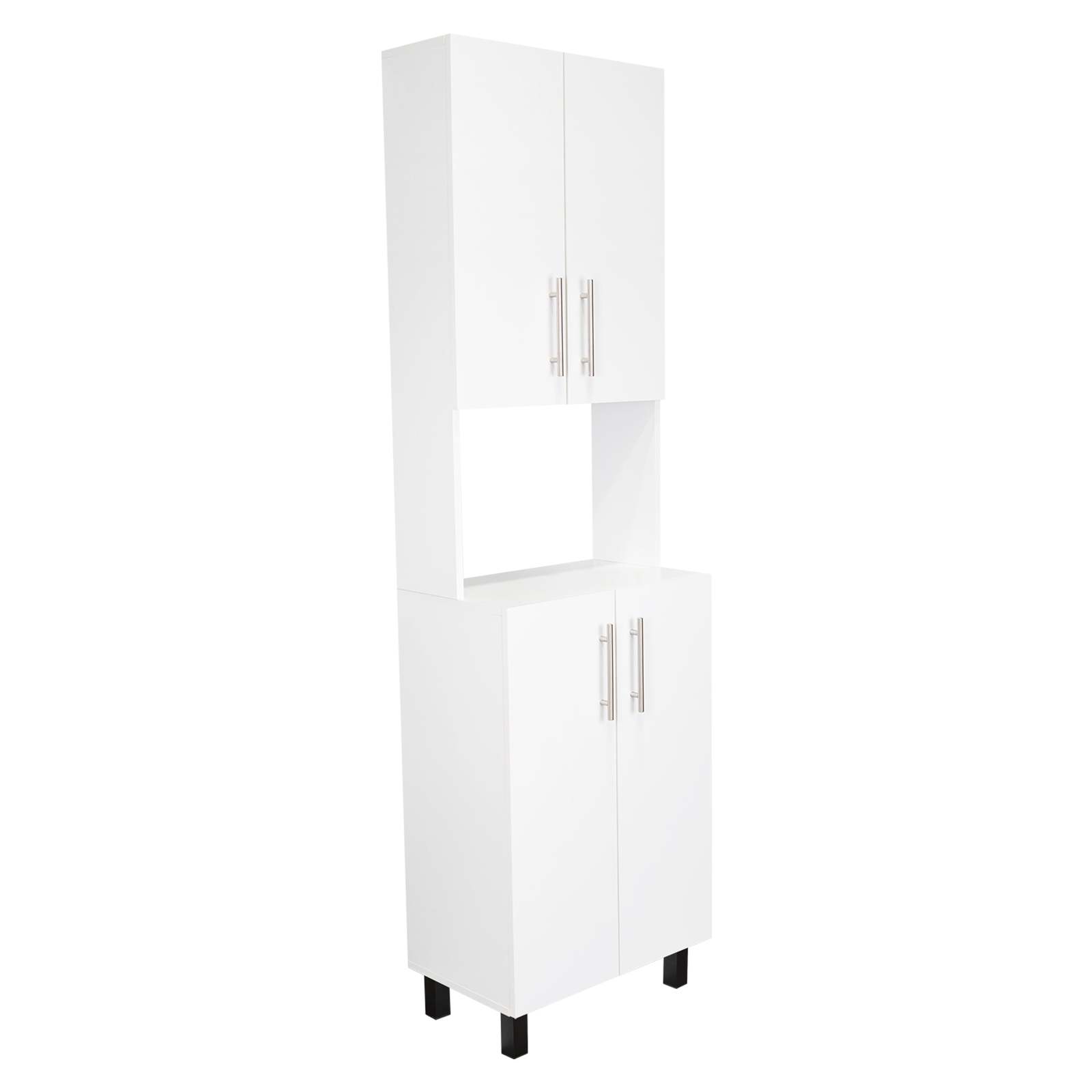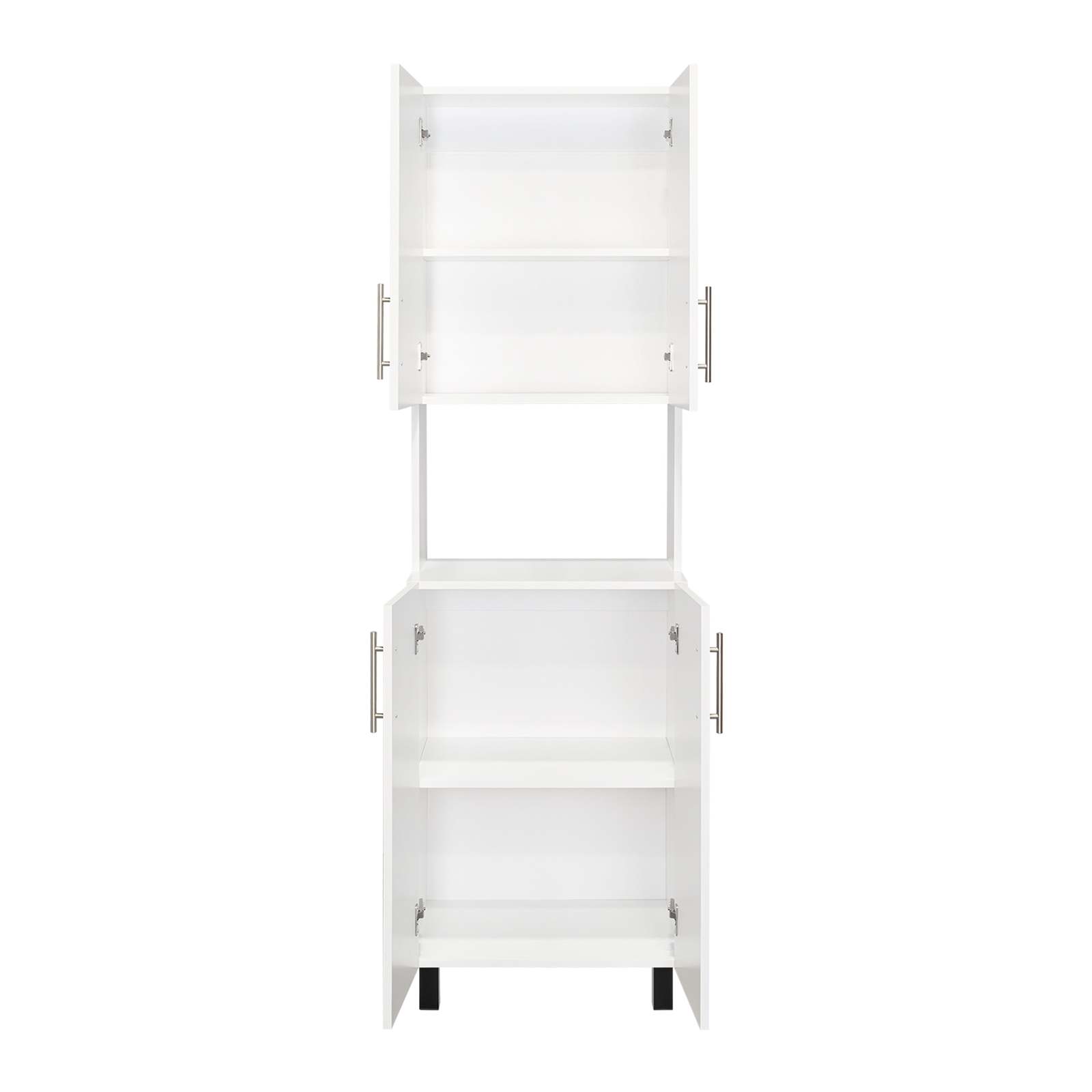 Tall White Kitchen Pantry Cabinet with Hutch & Shelves