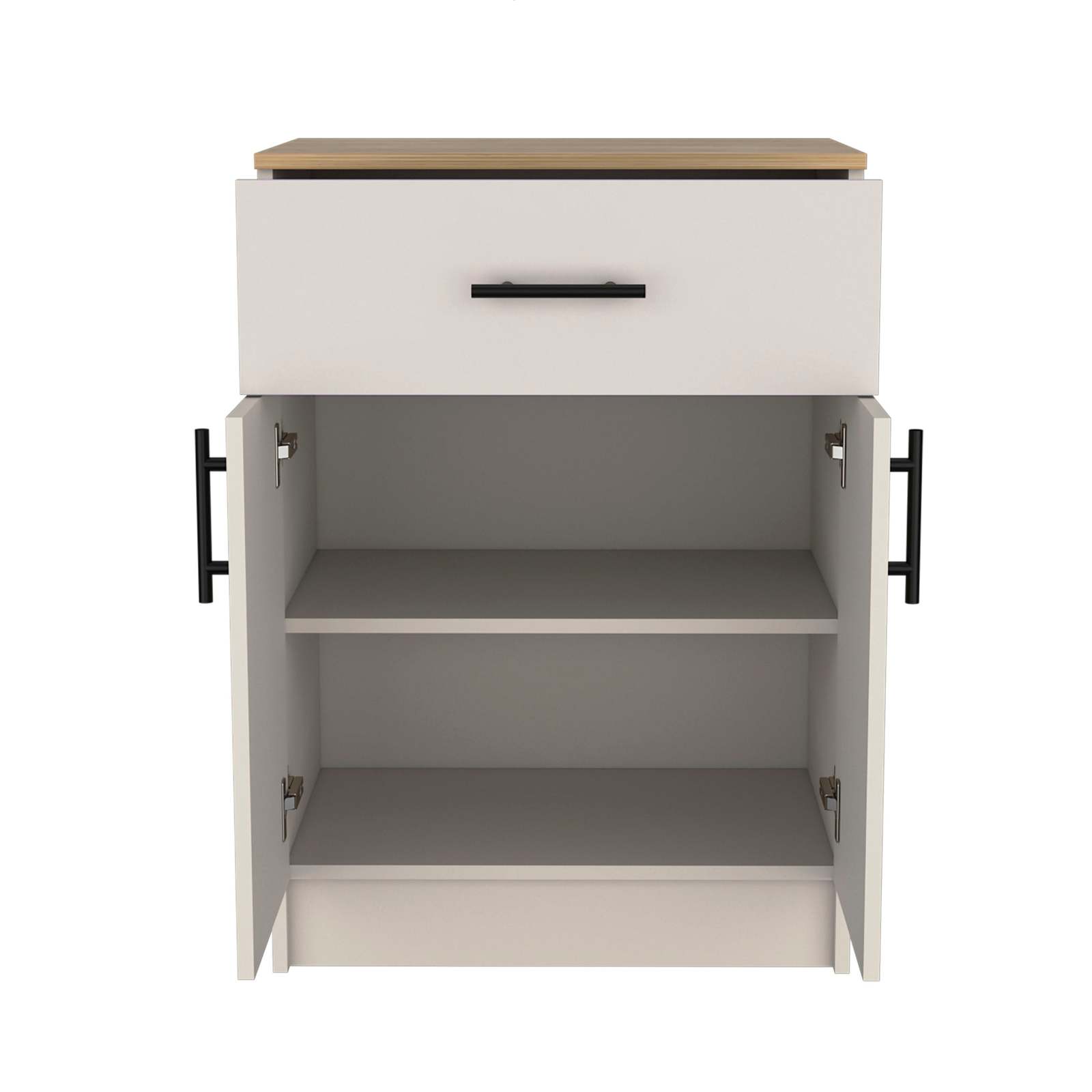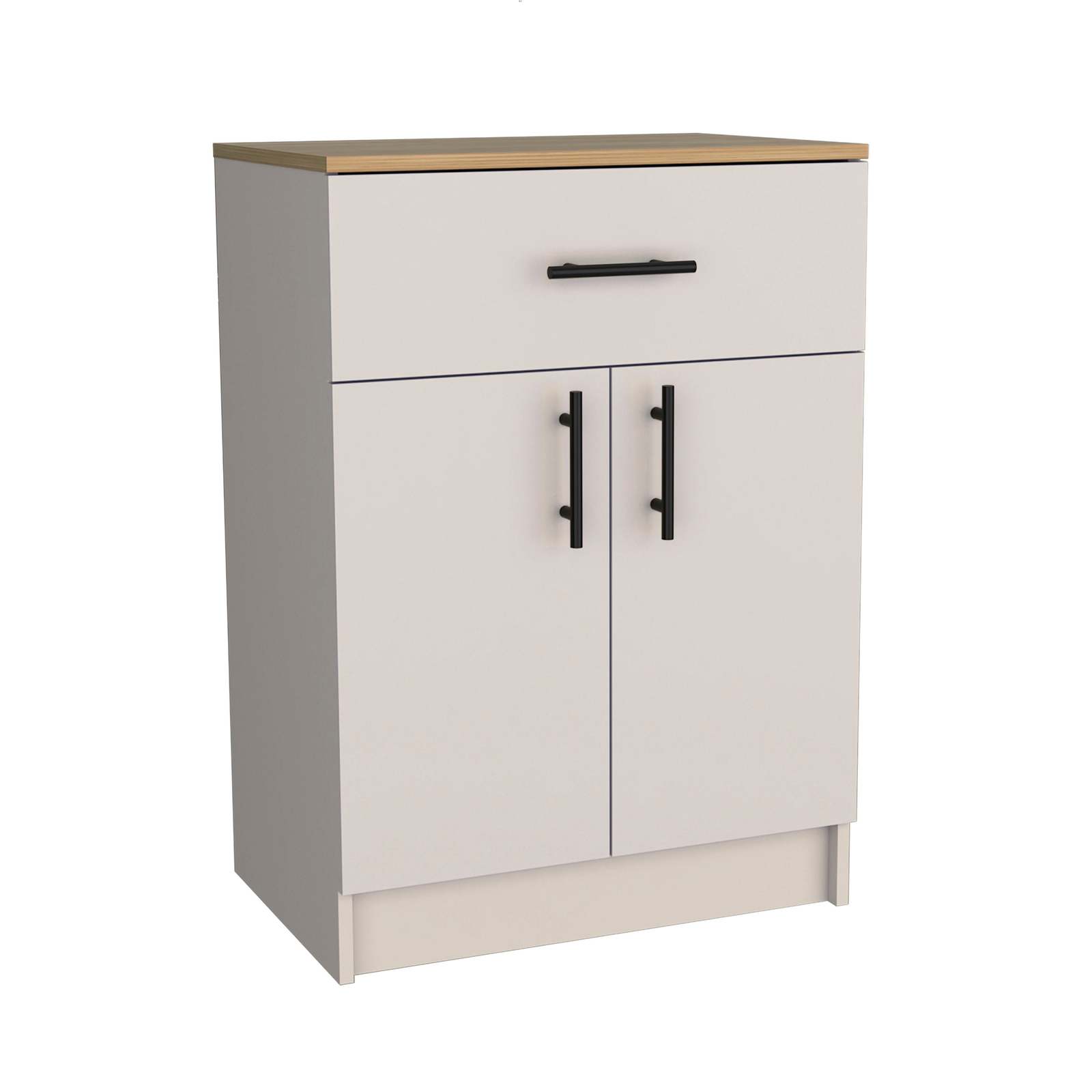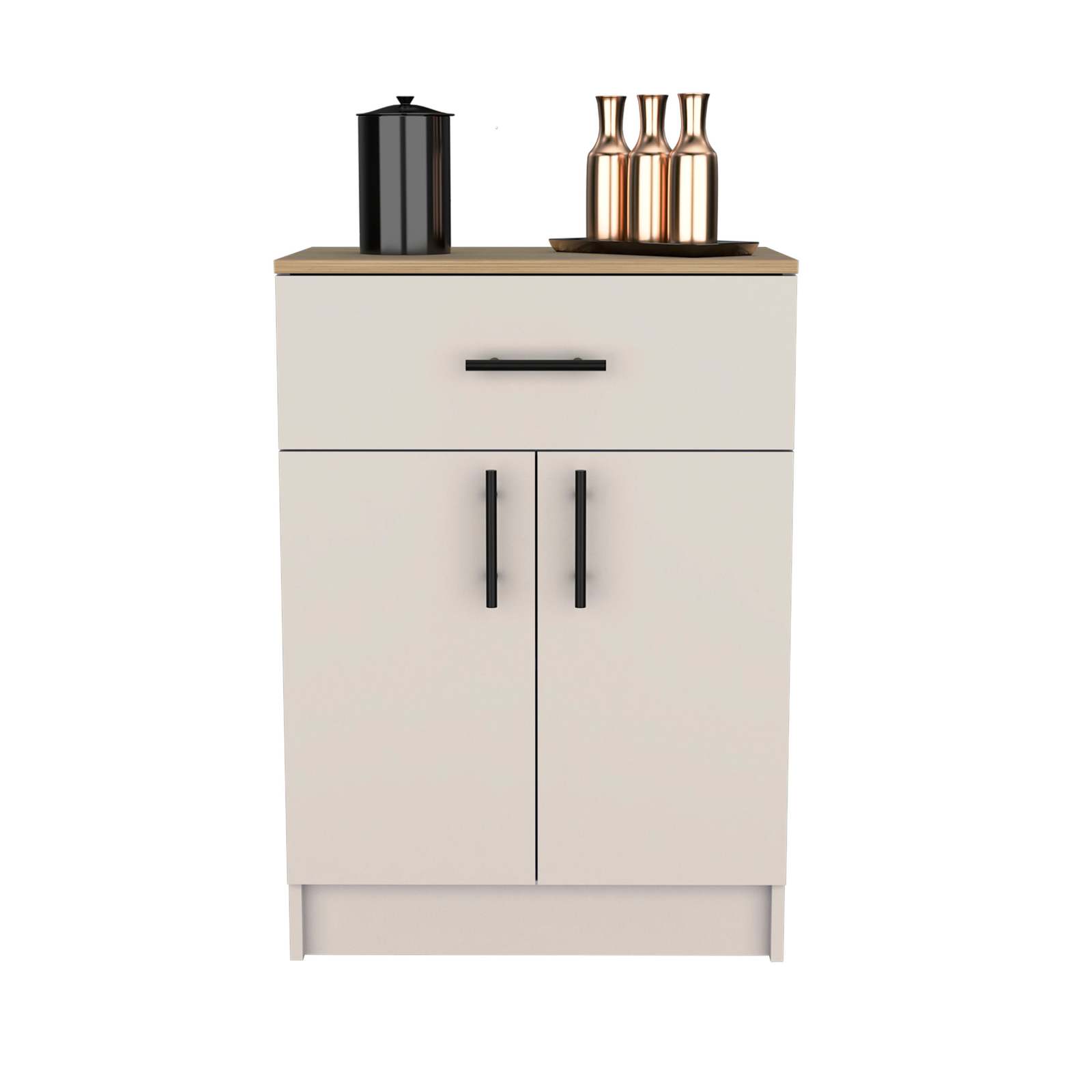 Organize your kitchen with this versatile pantry cabinet featuring one drawer, two interior shelves, and double doors for easy access. Its compact design makes it ideal for storing food items, small appliances, or kitchenware while enhancing your kitchen?s aesthetic. Made from durable engineered wood for long-lasting use.