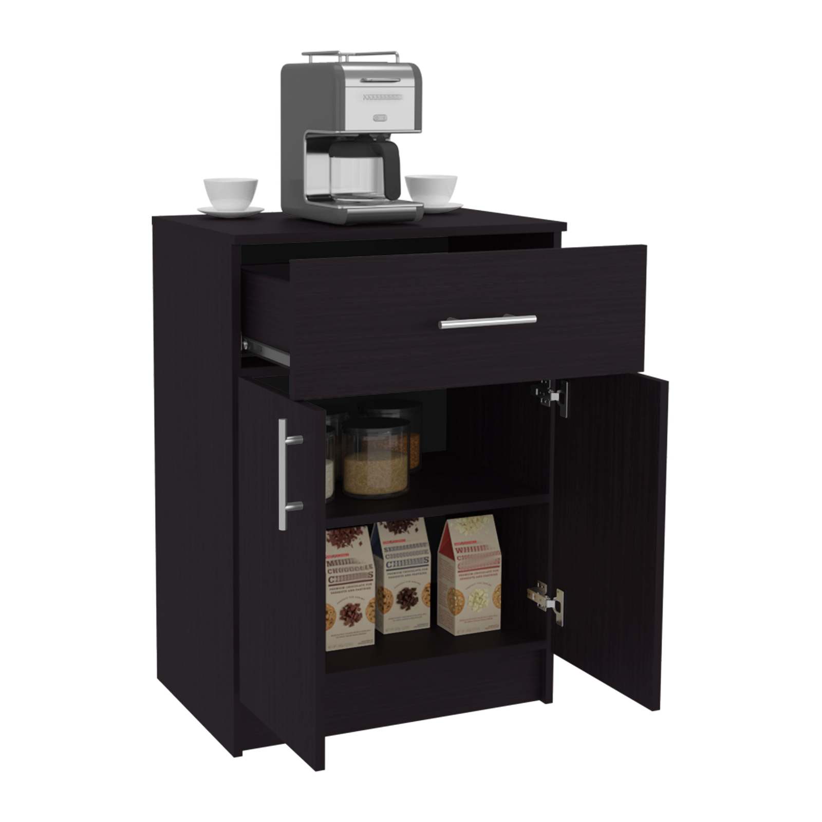 Mallorca Black Pantry Cabinet: 1 Drawer, 2 Shelves