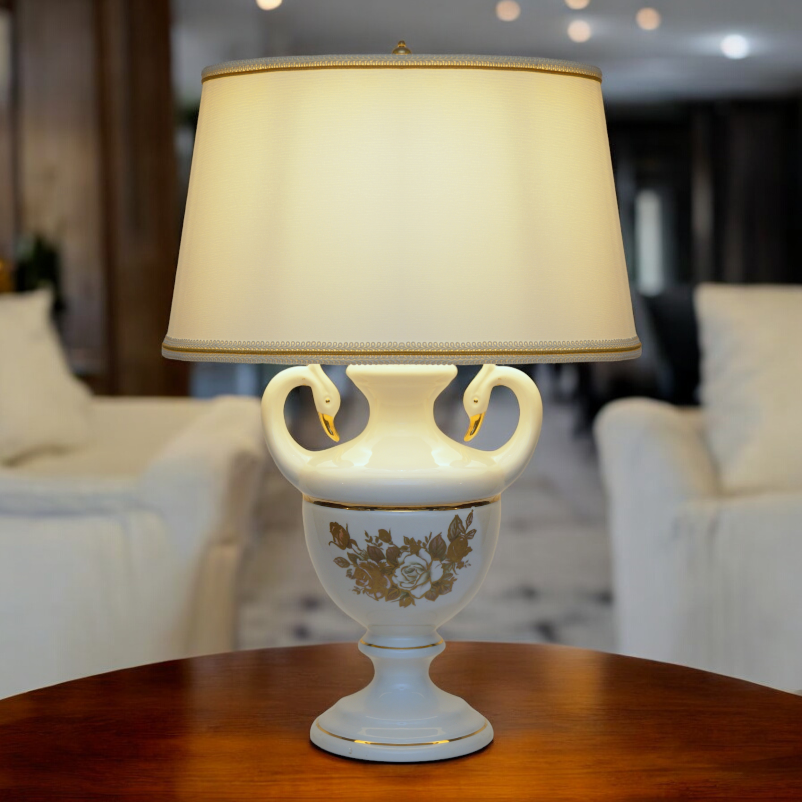 Classic Country House Table Lamp " Porcelain Swans " Ceramic