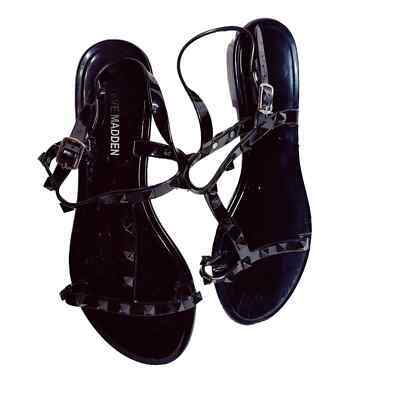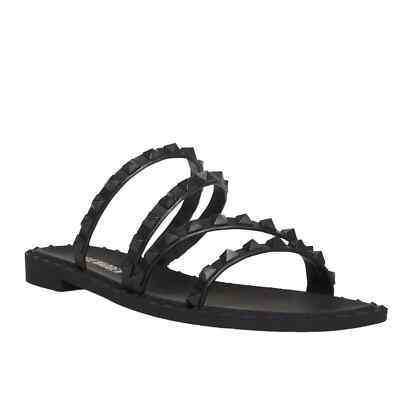 Steve Madden Womens Size 5.5/36 Skyler Black Studded Strappy Slide Sandals