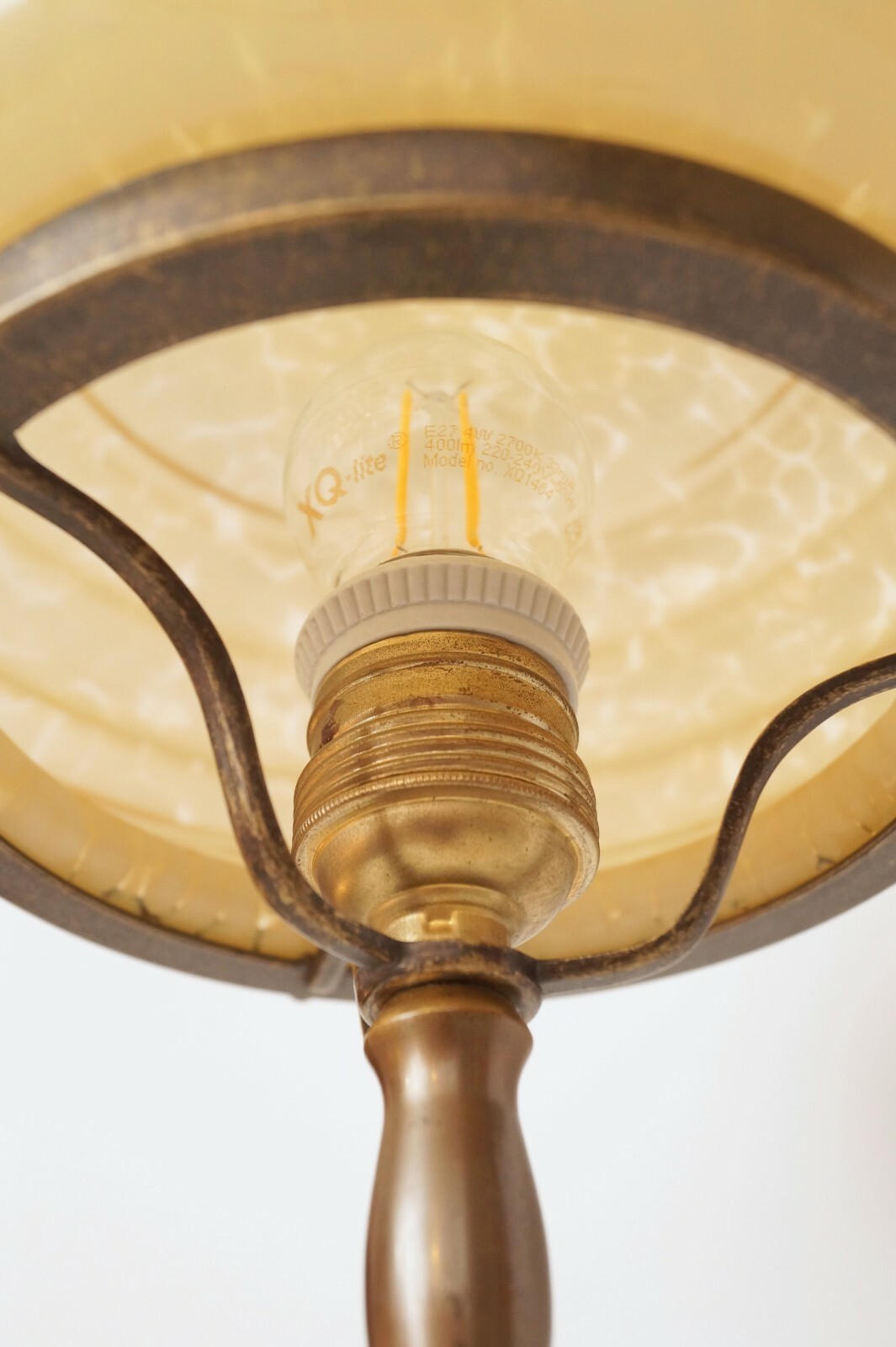 Important: We recommend using only LED lamps (filament bul!) For each of our lights. In addition to that of up to 12 times higher efficiency, the very low heat development of an LED bulb ensures the lifespan of the electrical system and the precious original glasses of its lamp. LED lamps available everywhere or here . Also suitable for LED/energy-saving bulbs with higher light output. Sale without decoration and lamp! Further Art Nouveau lights in our shop.