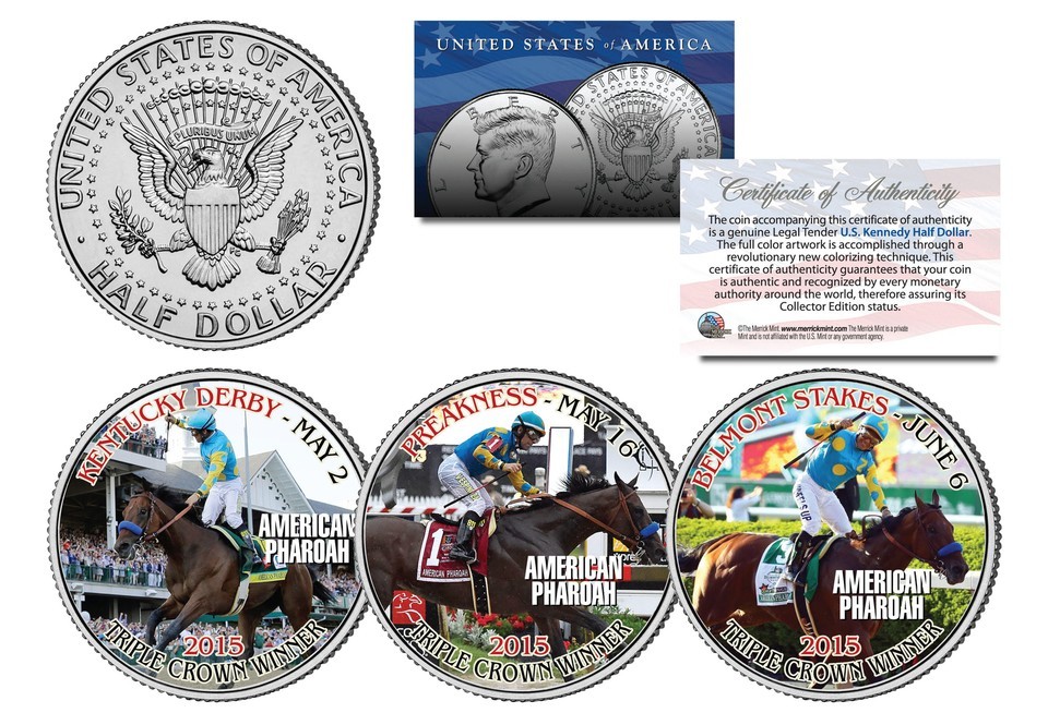 AMERICAN PHAROAH 2015 Triple Crown Winner JFK Half Dollar 3-Coin Set -TEST ISSUE