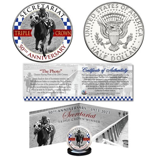The Triple Crown of horse racing is considered the most elusive feat in horse racing, and perhaps in all of sports. This 2015 TRIPLE CROWN WINNER - AMERICAN PHAROAH complete 3-coin set is a treasured collectible, successfully combining horse racing with coin collecting. This 2015 Test Promo 3-coin set is in extreme short supply. Here is your chance to own beautifully colorized JFK Kennedy Half Dollar U.S. Coins. These high-quality genuine Legal Tender U.S. coins have been colorized using a unique painstaking multicolor authentic process. Colorizing coins involves the unique application of special inks directly to the surface of a coin that achieves a level of detail, color saturation, and durability that is #1 in the coin industry. The result is an everlasting colorized coin collectible of ultra-high quality. Each coin comes in a premium coin capsule. The set comes with a Certificate of Authenticity to guarantee that your coins are authentic and recognized by every monetary authority around the world, assuring its Collector Edition status.