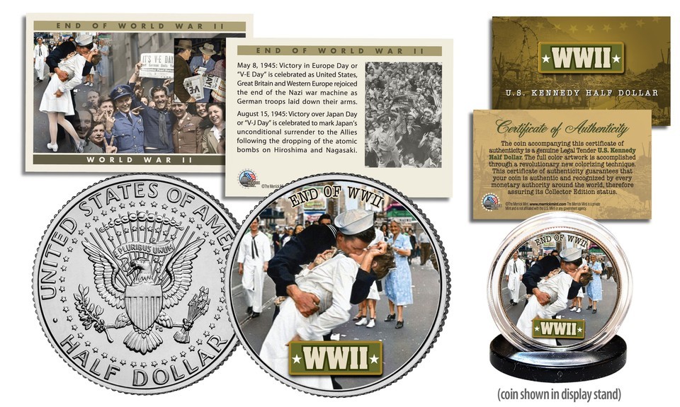 WWII * THE KISS - VICTORY * KENNEDY Half Dollar U.S. Coin with Fact Trading Card