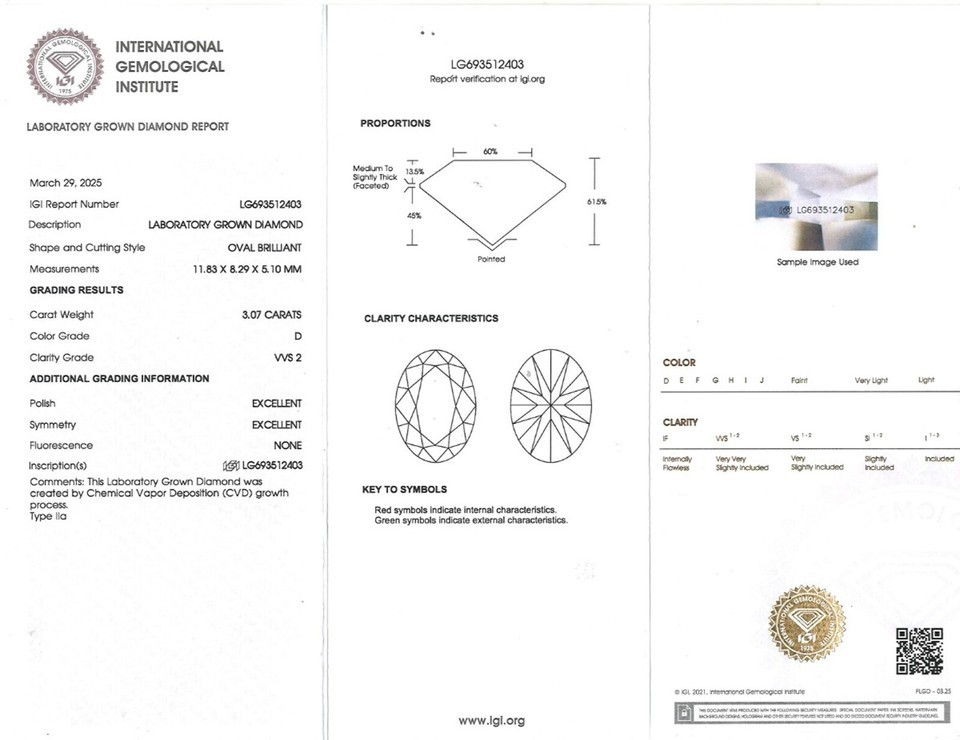 Authenticity Guarantee 5.35 Ctw Oval Cut IGI D-VVS2 Lab Grown Diamond Engage...