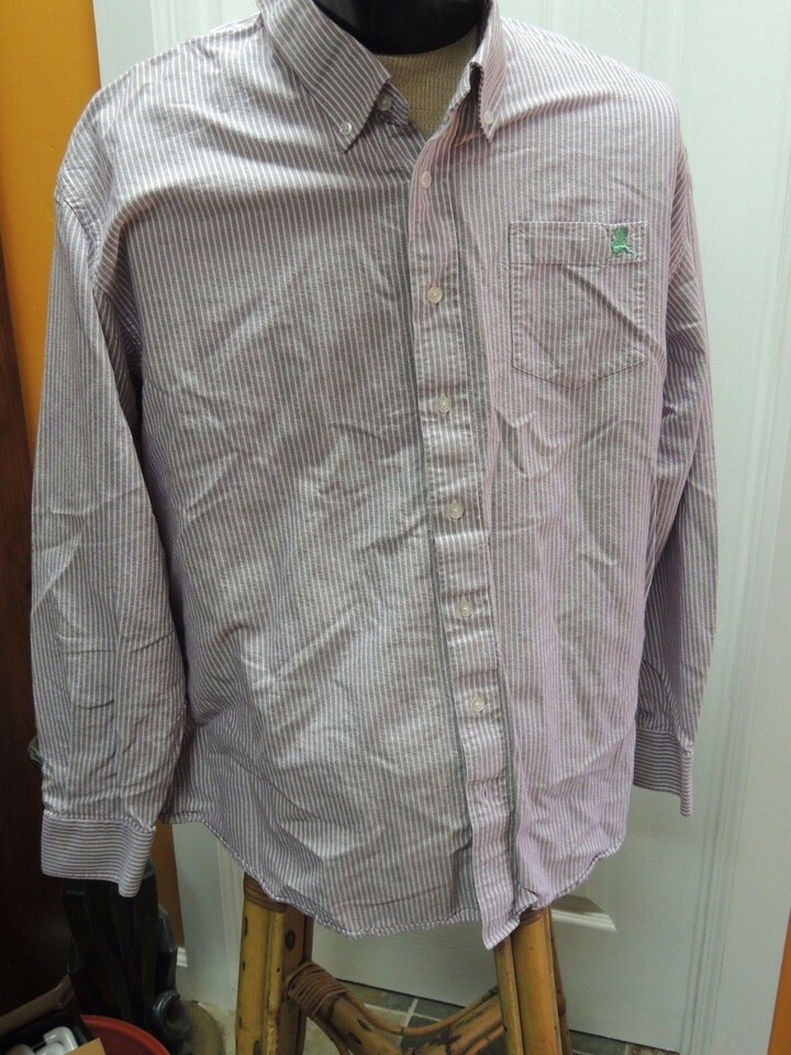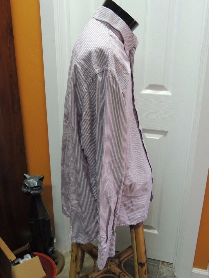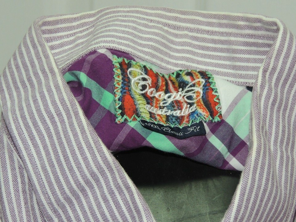Men's XXL Coogi Long Sleeve Shirt White & Purple Stripe 100% Cotton