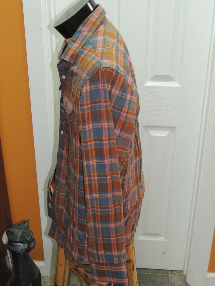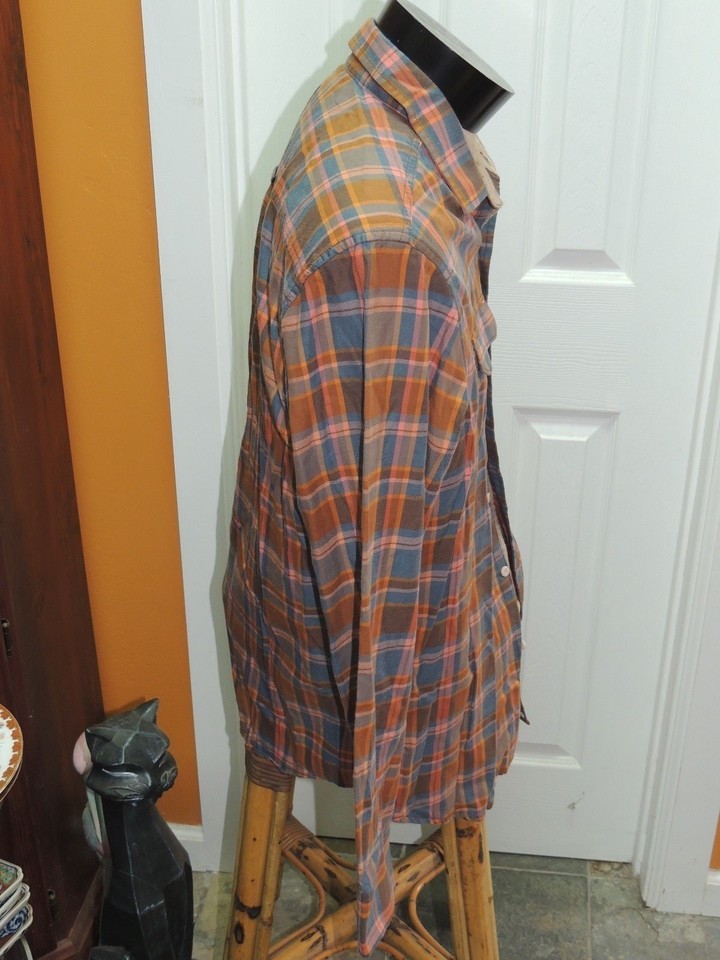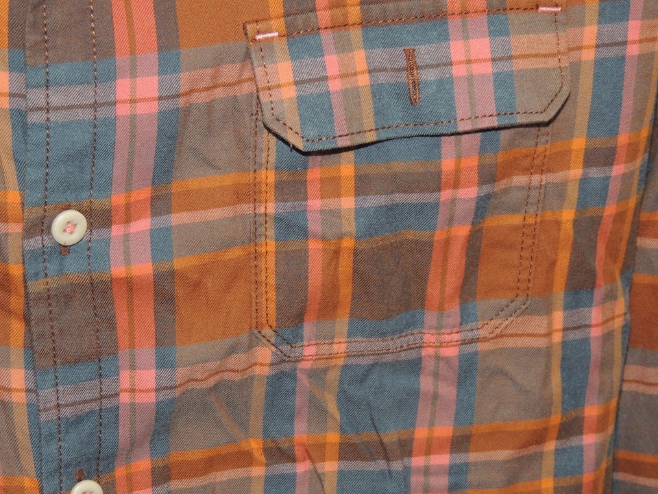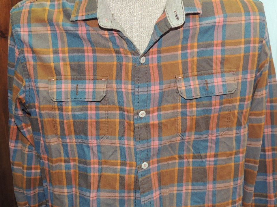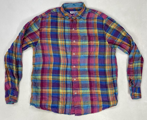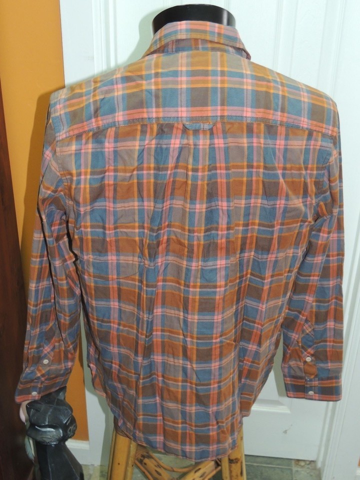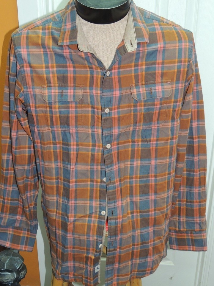 Men's MED Tommy Bahama Long Sleeve Shirt 100% Cotton GRAY PINK ORANGE plaid