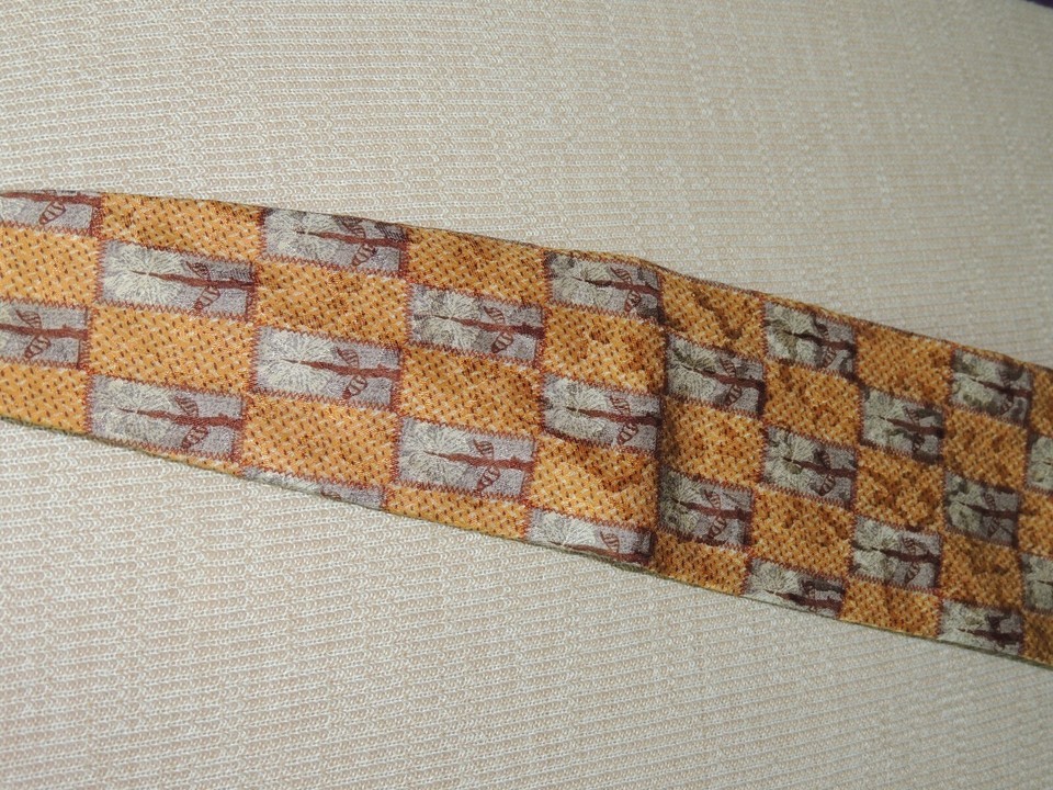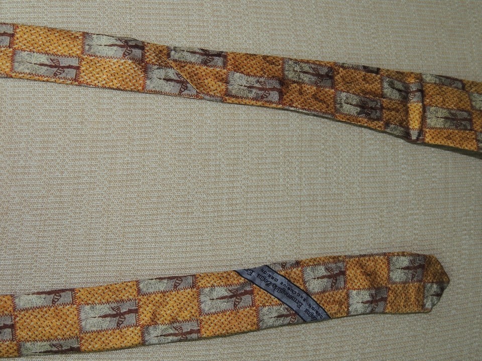 Ermenegildo Zegna Italy Neck Tie/Necktie Silk yellow brown gray 58"x3.5"