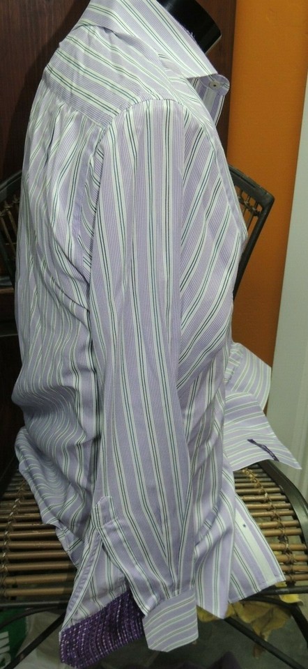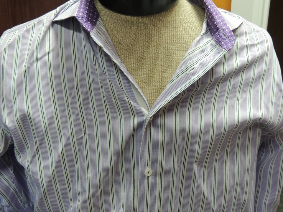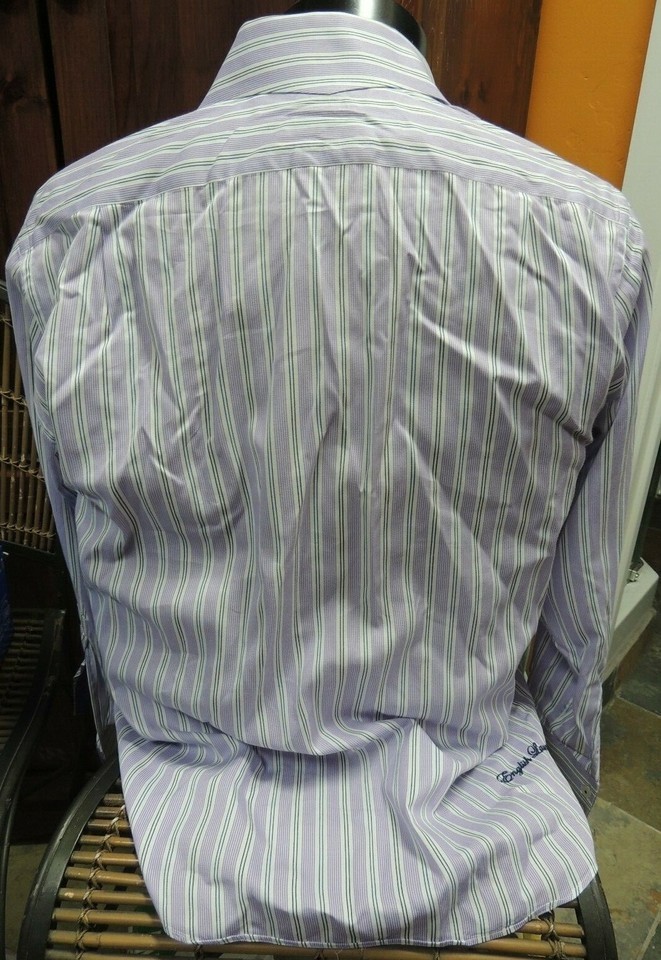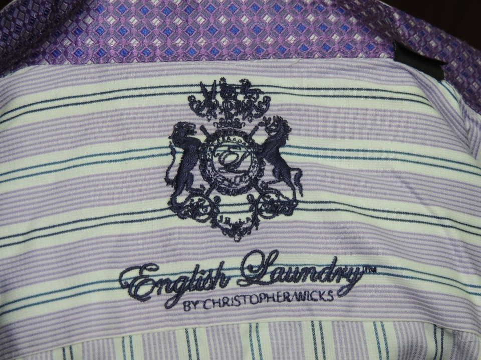 Mens 16 32/33 English Laundry Long Sleeve Shirt 100% Cotton Purple White Stripe