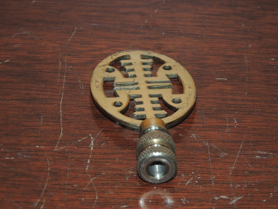 Vintage Brass / Bronze Lamp Finial 3"+ Architectural Salvage Chinese Symbol Oval