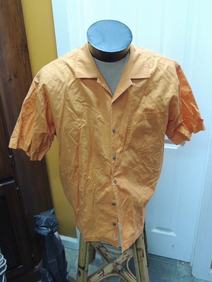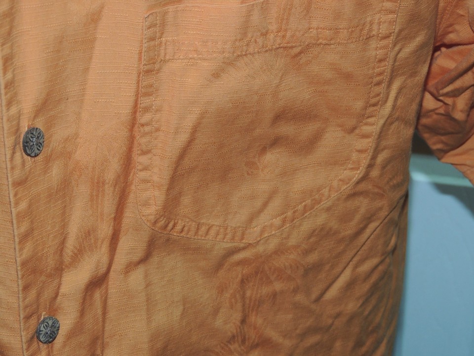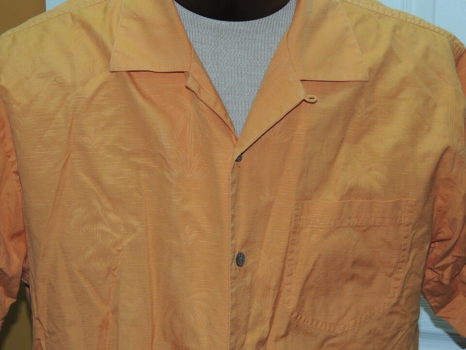 Men's MED Tommy Bahama Short Sleeve Hawaiian Shirt 100% Cotton ORANGE palm tree