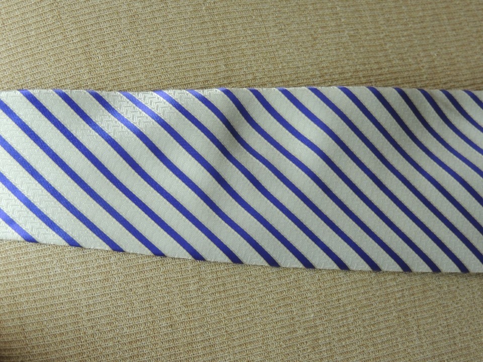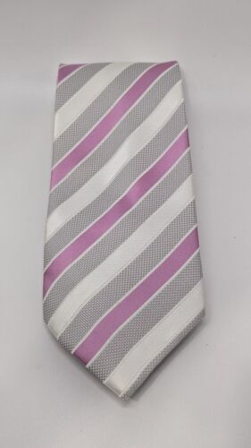Giorgio Armani Italy Neck Tie/Necktie Silk White Purple stripe 60"x4"
