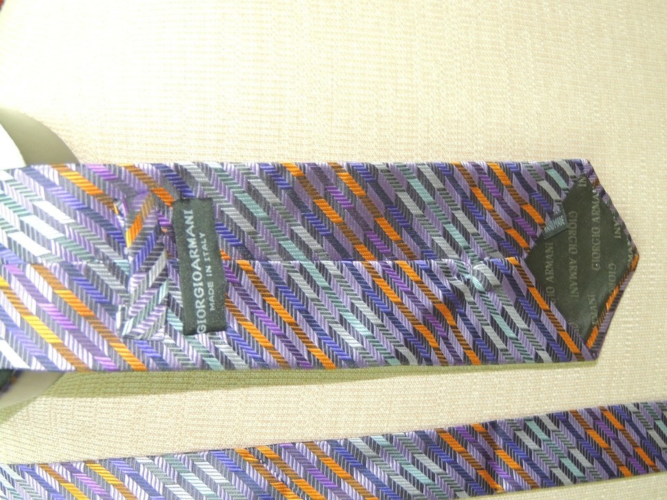 Giorgio Armani Italy Neck Tie/Necktie Silk Orange Purple Silver stripe 60"x3.75"