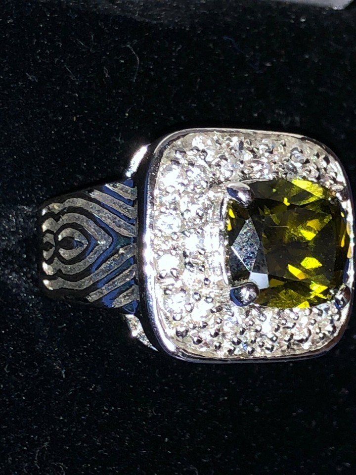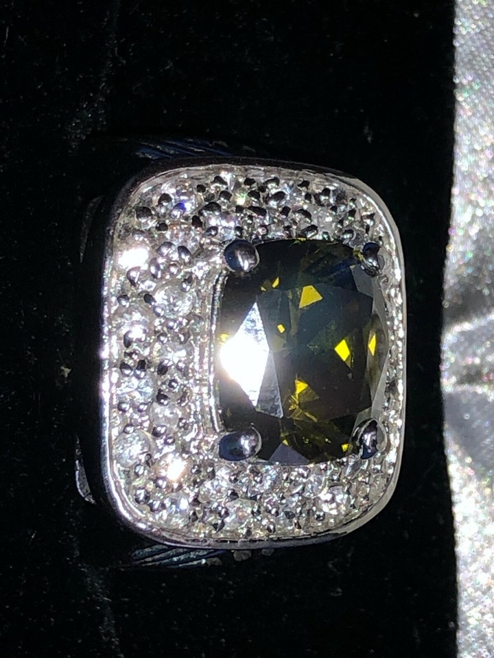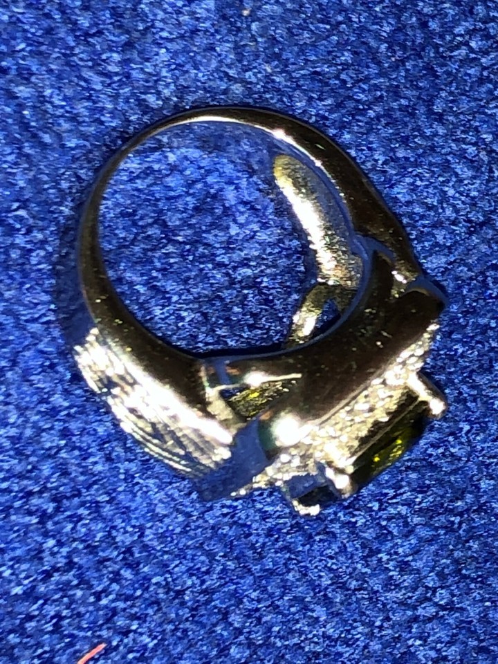 Ring unmarked 18mm size 8-9 poss Pompeii3 silver tone faux citrine chrysoberyl