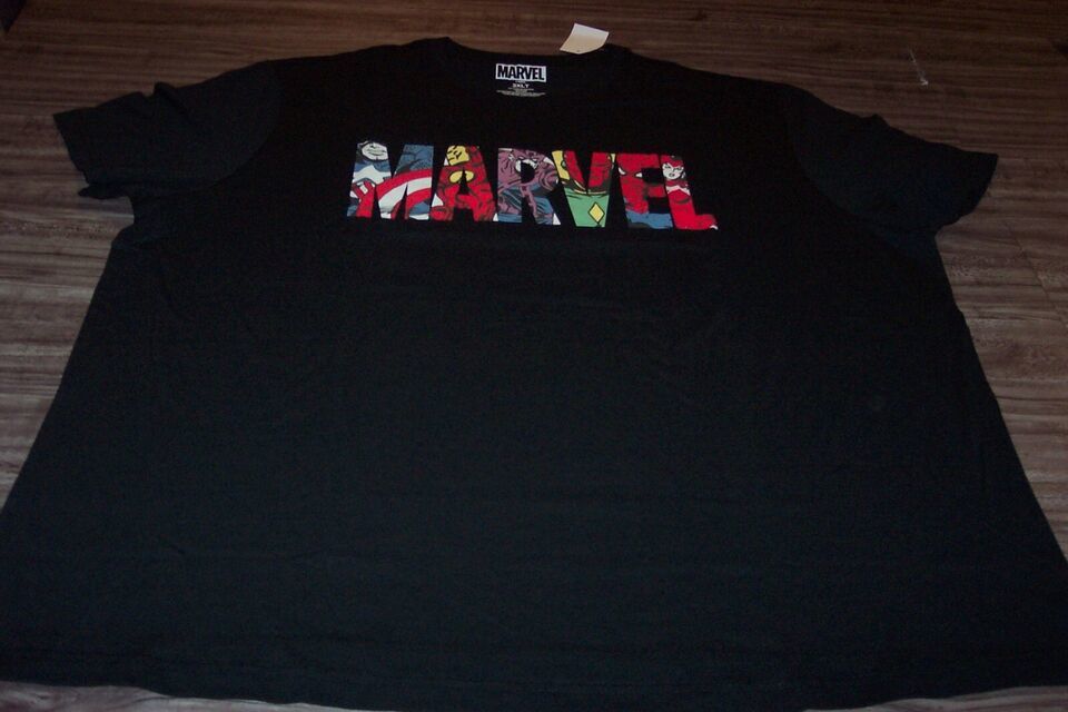 This is a MARVEL COMICS Captain America, Iron Man Spiderman Scarlet Witch Vision Hawkeye T-shirt. It is a size BIG AND TALL 3XLT, and it is NEW with the tag. It is 31 inches from armpit to armpit and 34 inches in length. The Print is made to look vintage. Combine auctions to save on shipping. AG
