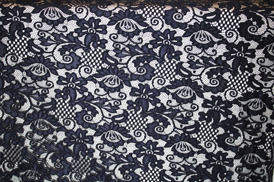 EMBROIDERED 3D FLORAL LACE ULTRA SOFT FABRIC DEEP NAVY BLUE 55" WIDE BY THE YARD