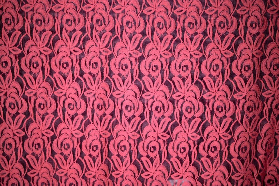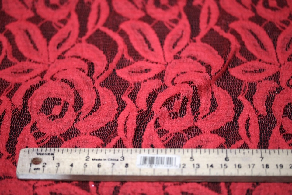EMBROIDERED 3D FLORAL LACE ULTRA SOFT FABRIC RED 55" WIDE BY THE YARD