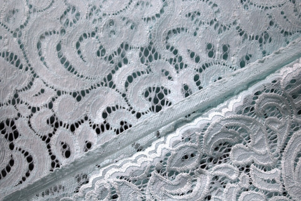 EMBROIDERED 3D FLORAL LACE ULTRA SOFT FABRIC AQUA GREEN 57" WIDE BY THE YARD