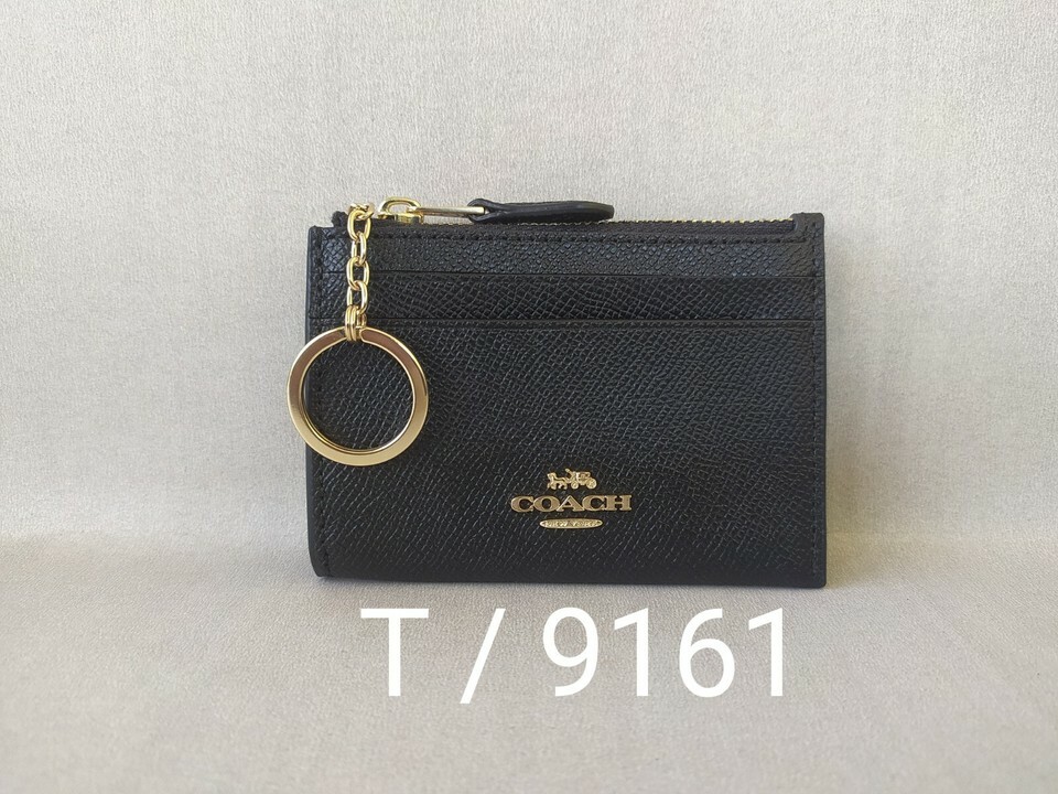 Coach Mini Skinny ID zip Card Case in cross grain leather T / 9161