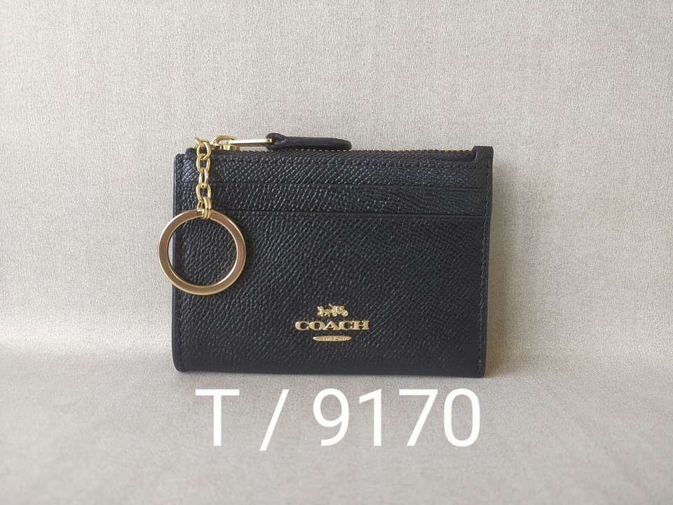 Coach Mini Skinny ID zip Card Case in cross grain Leather FREE Shipping T / 9170