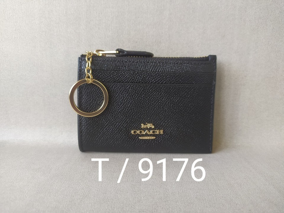 Coach Mini Skinny ID zip Card Case in cross grain Leather FREE Shipping T / 9176