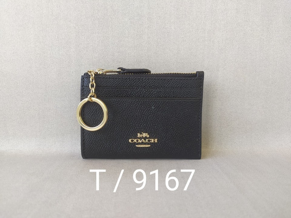 Coach Mini Skinny ID zip Card Case in cross grain Leather FREE Shipping T / 9167