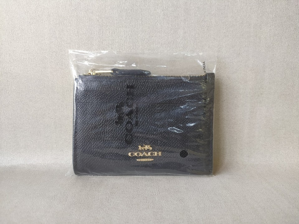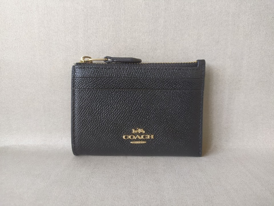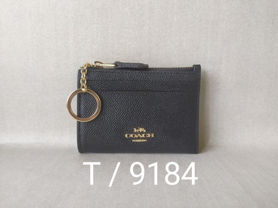 Coach Mini Skinny ID zip Card Case in cross grain Leather FREE Shipping T / 9184