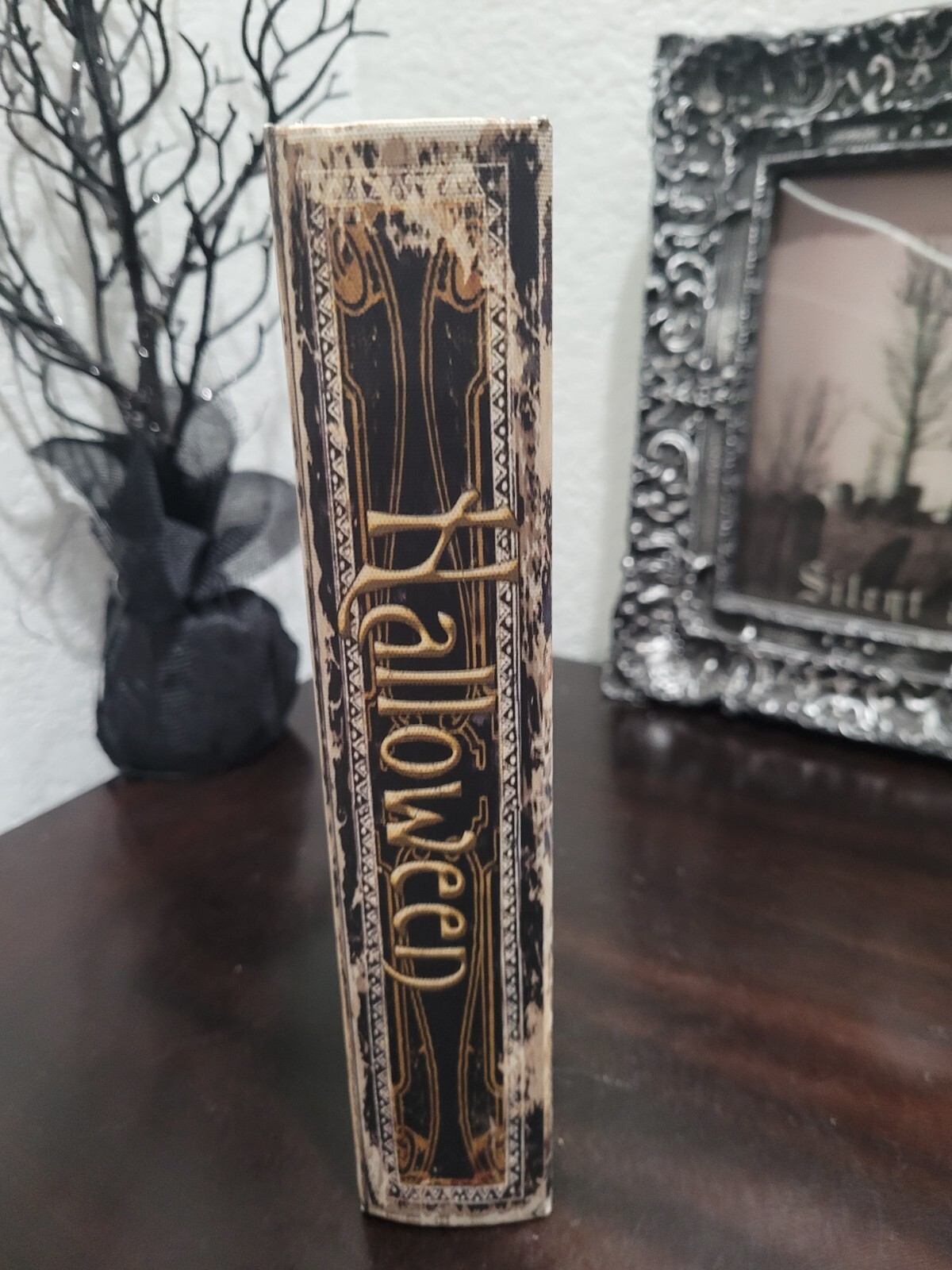 HALLOWEEN WITCH MOON FAUX HANDBOOK DISTRESSED STASH BOX DECOR
