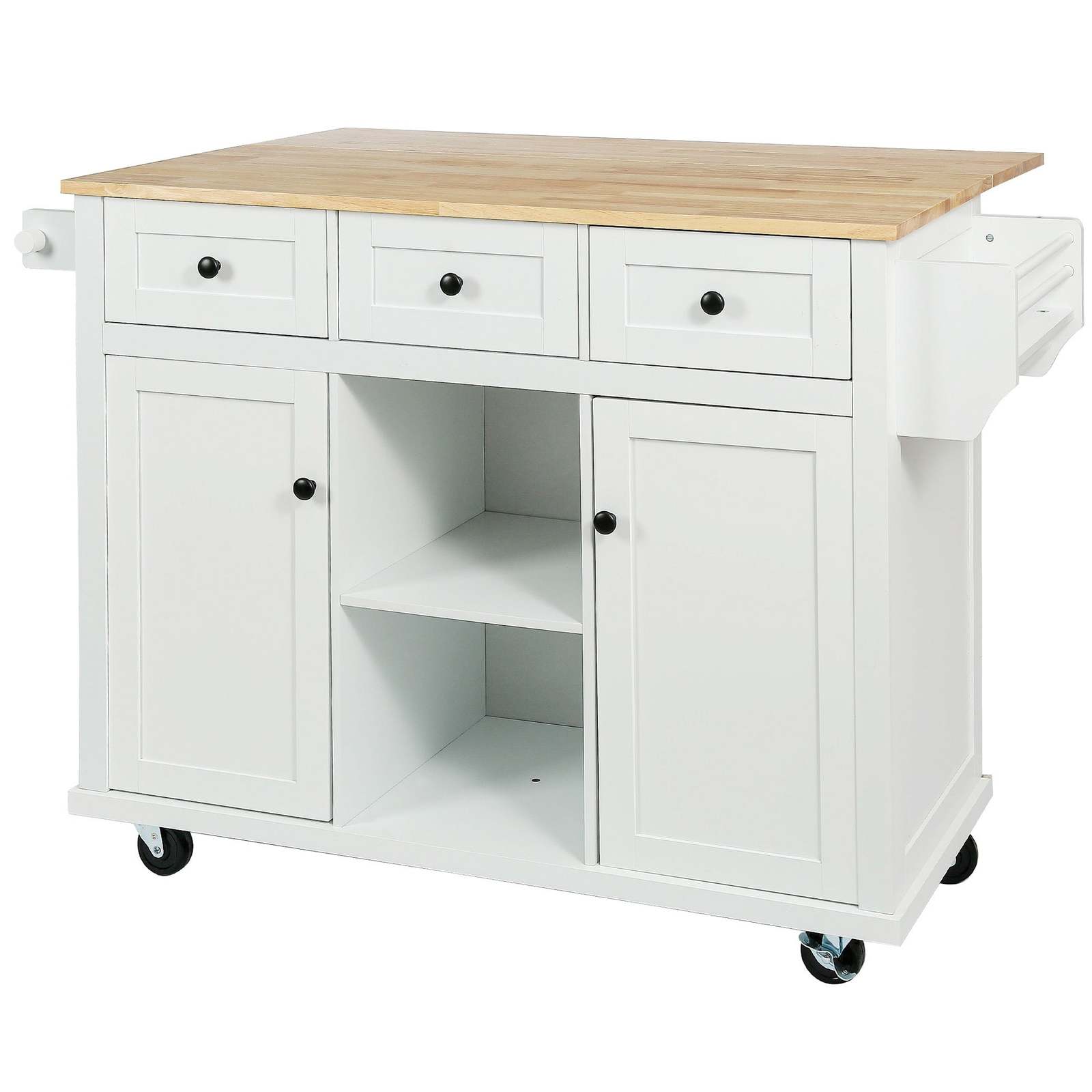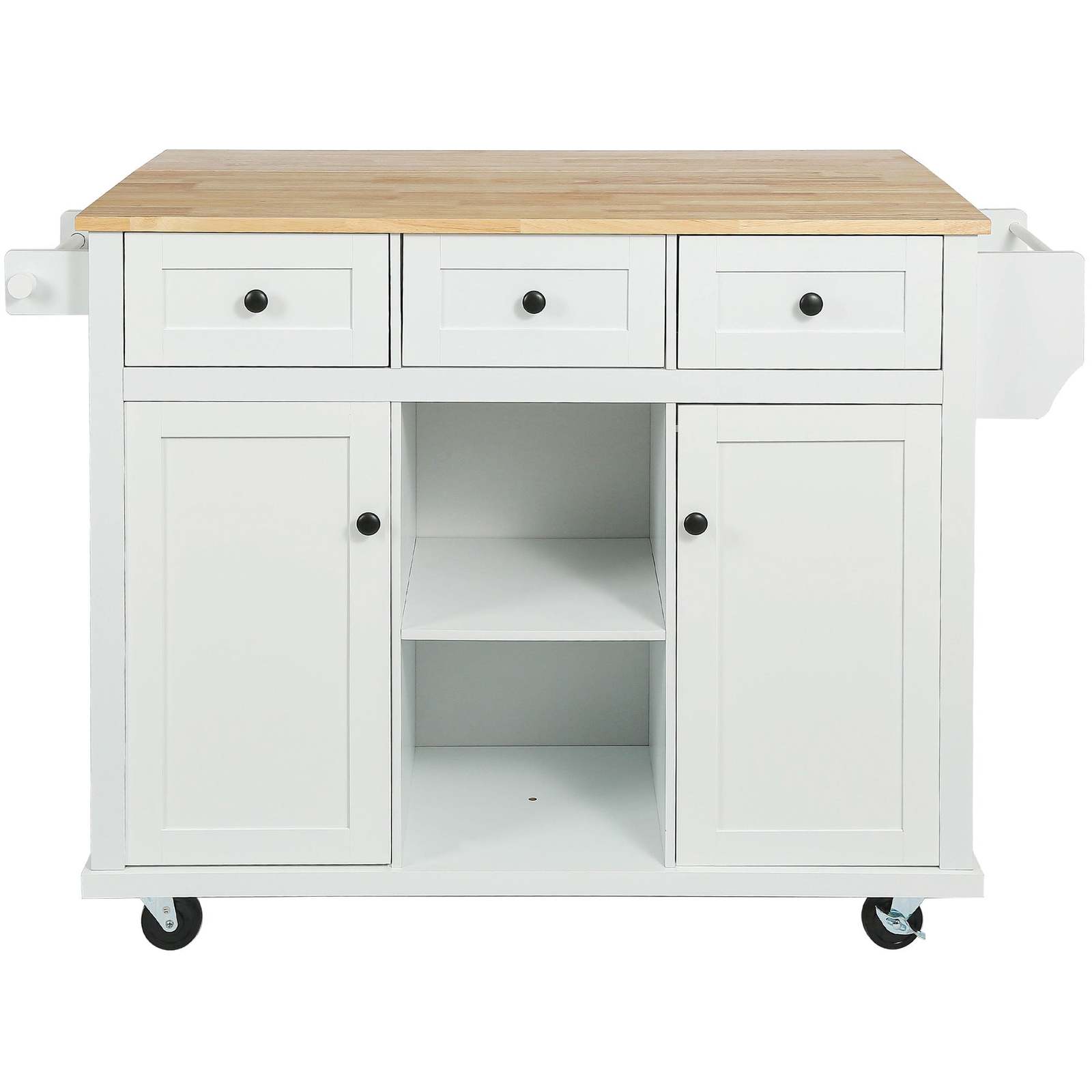 White Kitchen Island Cart: 3 Drawers, Rubberwood