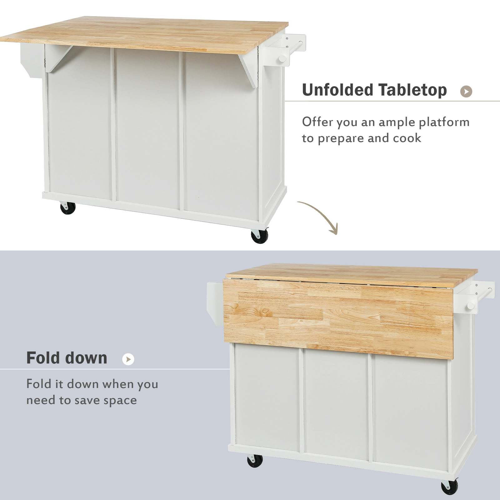 Kitchen Cart with Rubber wood Drop-Leaf Countertop ,Cabinet door internal storage racks