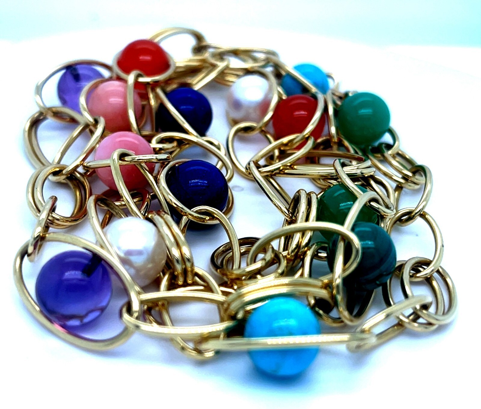 Some Links are Set with Spherical Cut Gemstones, Including Cultured Pearl and Malachite