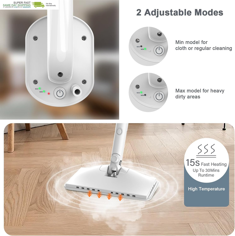 ?Unleash the Power of High-Temperature Steam Cleaning? ? Experience a new era of cleaning with the 1200W steam mop that transforms water into high-pressure steam in just 15 seconds. And each time filling up the water, steam cleaner provides you with up to 30 minutes high-temperature cleaning runtime.