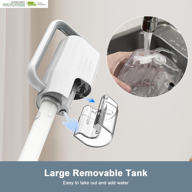 ?Detachable and Washable Part Steamer? ?The water tank upgrades to capacity of nearly 400ML, reducing the hassle of frequent refills, while the easily detachable tank simplifies the refilling process, eliminating the worries of water leaks. After cleaning, the mop pads are machine washable, and an extra set is provided for your convenience.