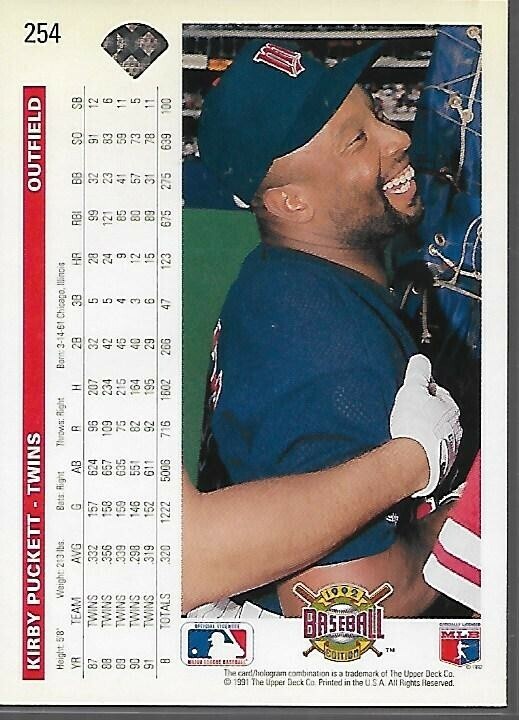 1992 Upper Deck, Kirby Puckett, HOF, Minnesota Twins, #254