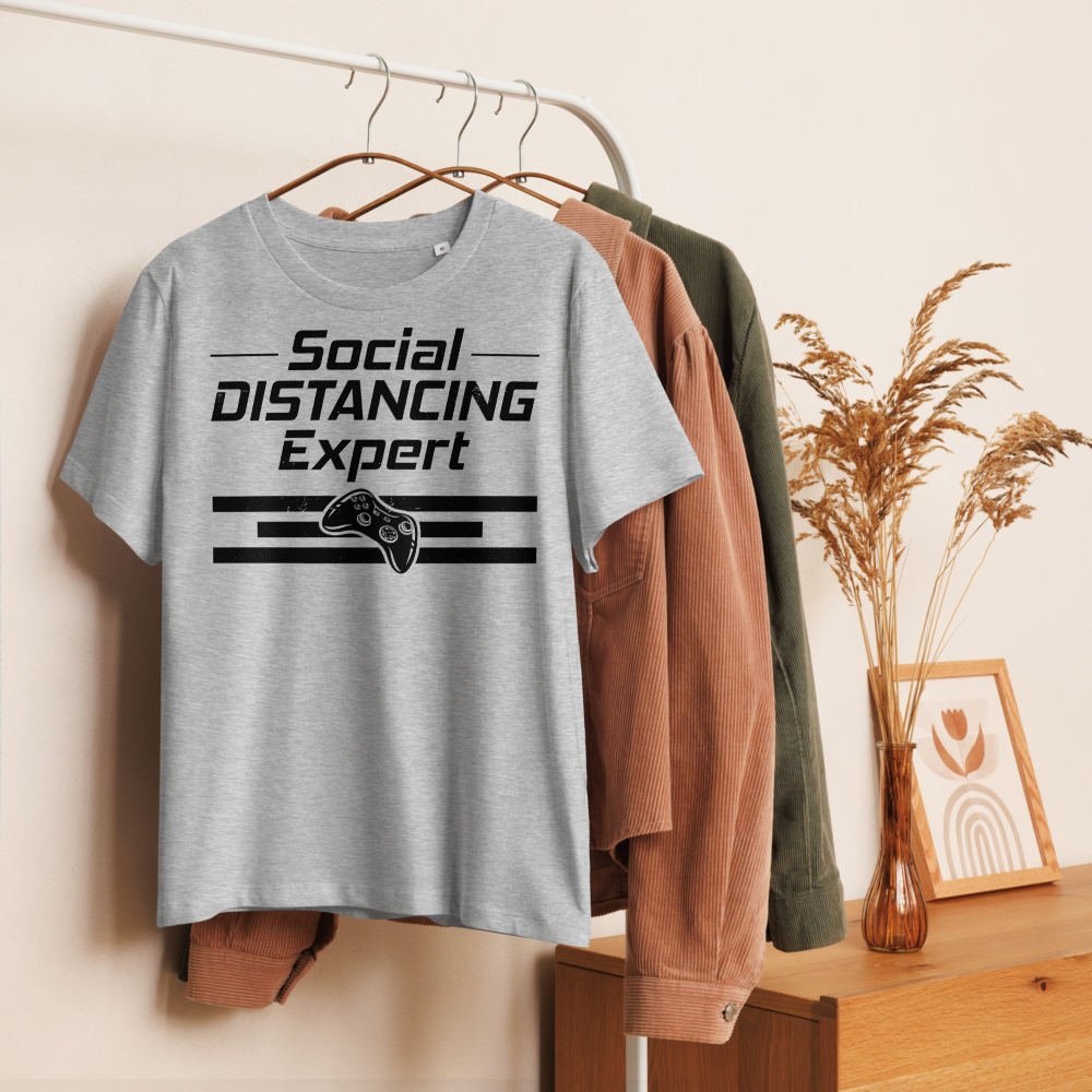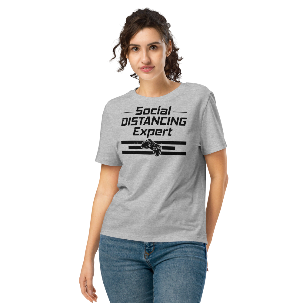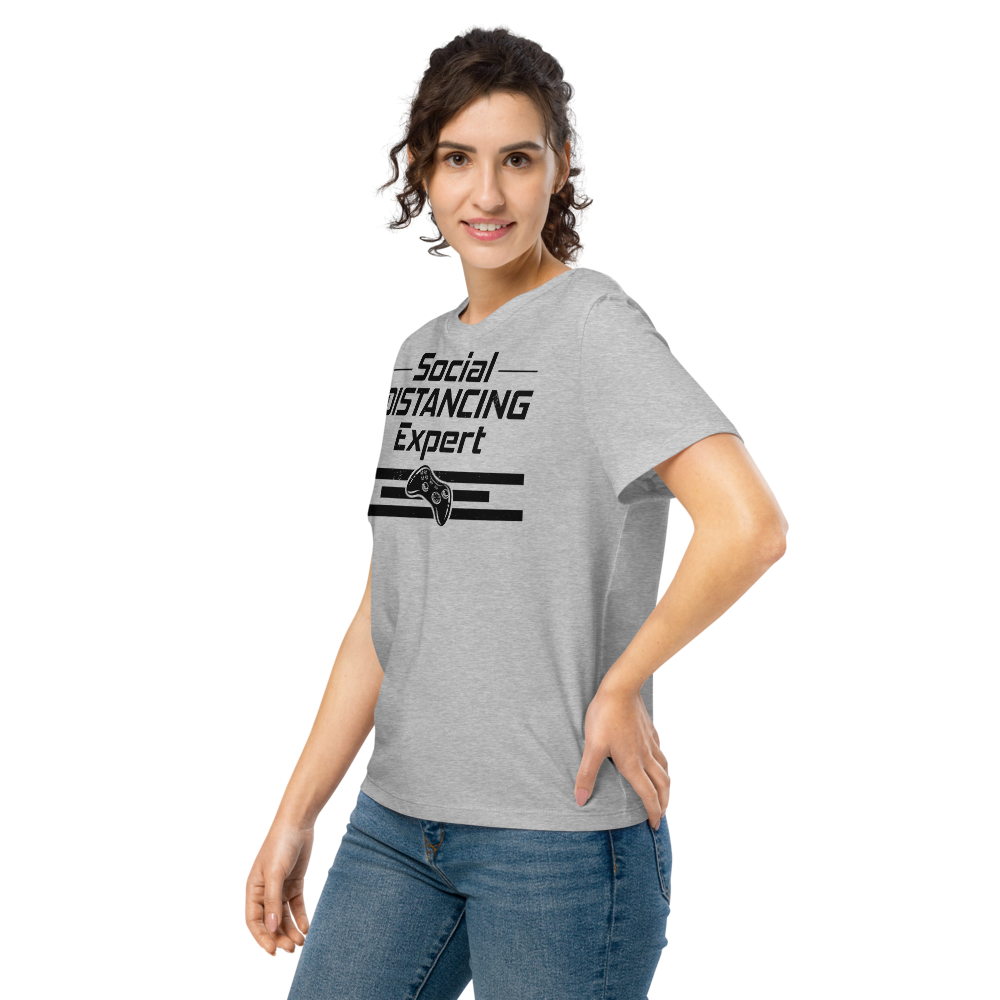 Women’s Organic Ribbed Neck T-Shirt – “Social Distancing” (Heather Grey)