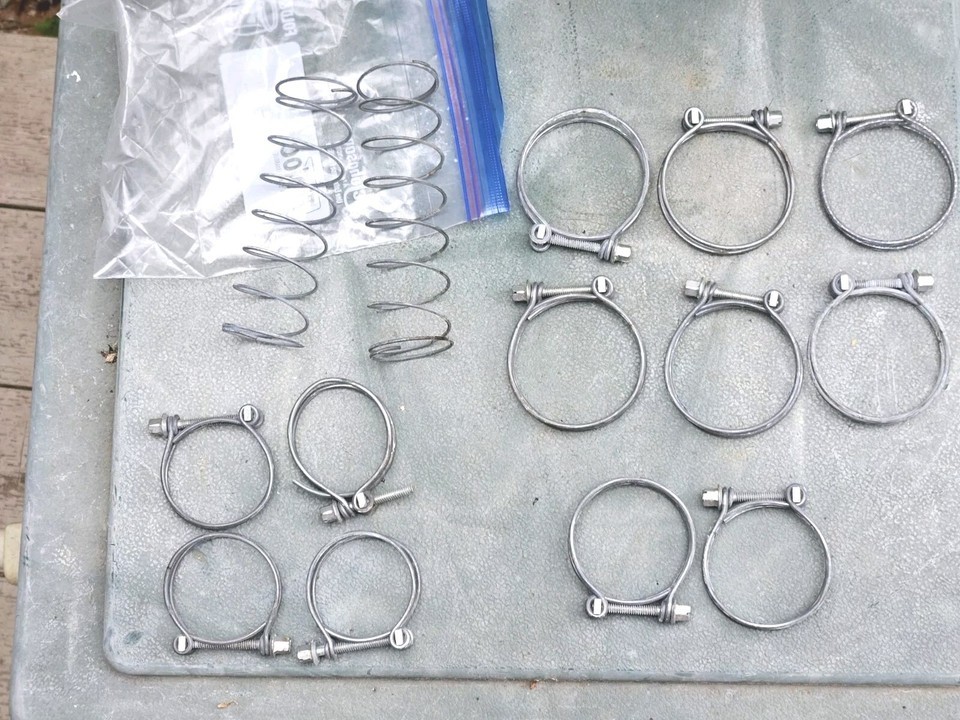 14 pc lotHOSE CLAMPS WIRE 2" 2.25" 2.50" hose springs VINTAGE HOT ROD NOS