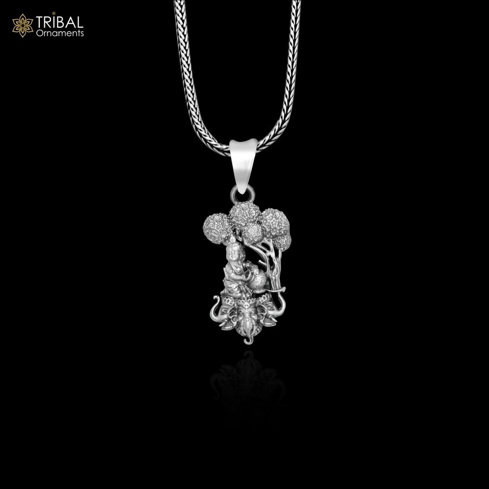 925sterling silver lord Krishna with tree face elephant unisex jewelry nsp1027