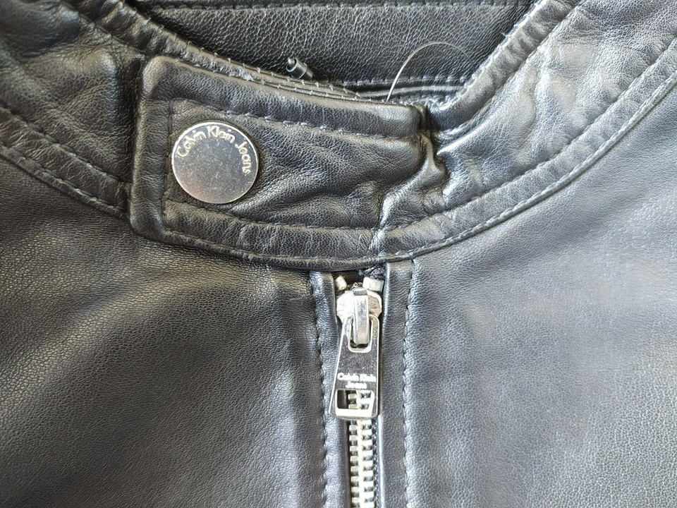 CALVIN KLEIN Leather Biker Jacket $450 FREE WORLDWIDE SHIPPING FAT 0105