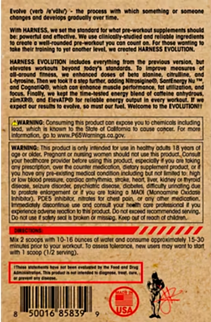 HARNESS EVOLUTION builds on the legacy of its predecessor to redefine workout performance. This upgraded formula features enhanced dosages of beta-alanine, citrulline, and L-tyrosine to support strength, endurance, and cognitive focus. We?ve gone even further by incorporating clinically studied ingredients including: